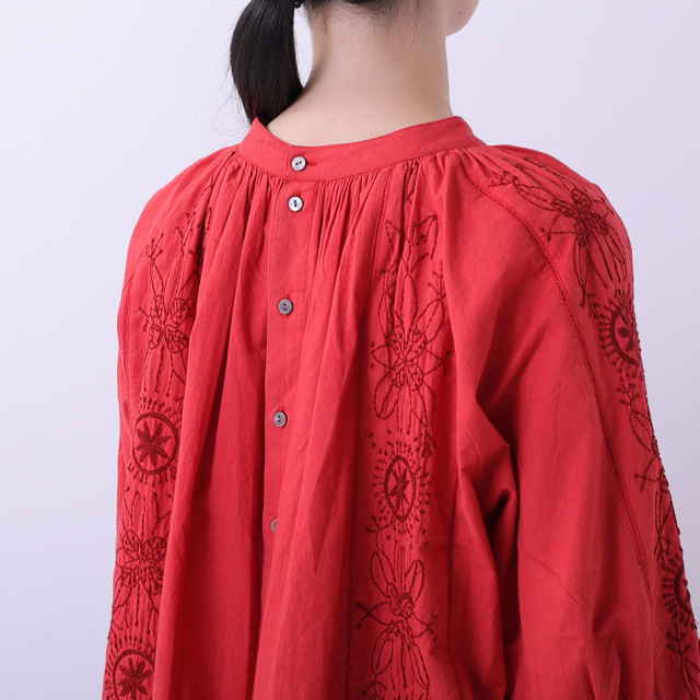 衿もとには細かなタックを施して分量感を出したシルエットに。