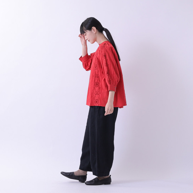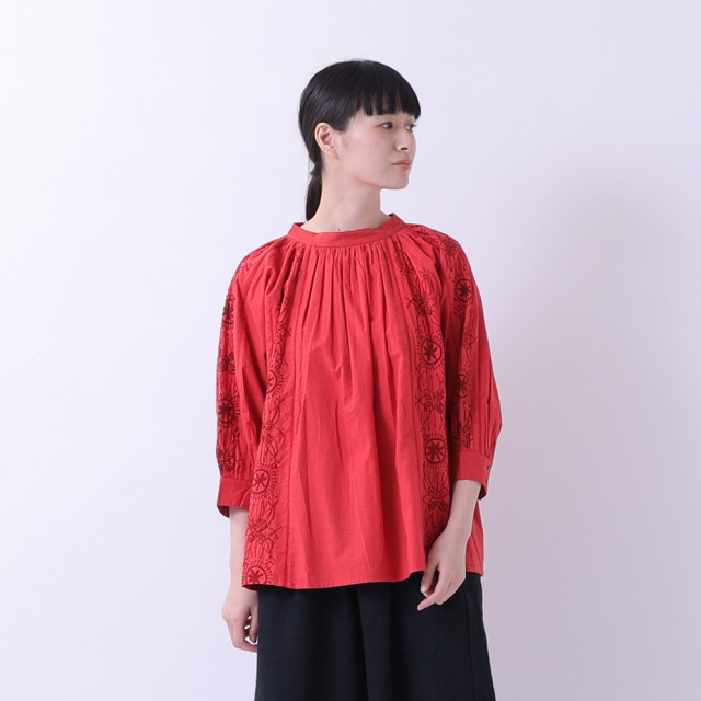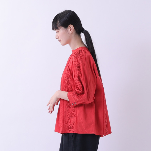 程よいハリ感のあるコットンキャンブリック素材を使用したブラウス。