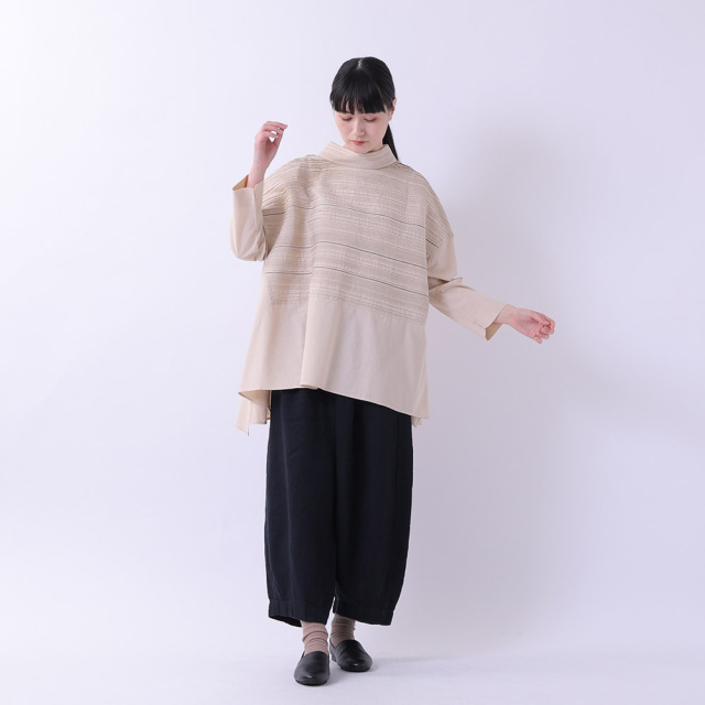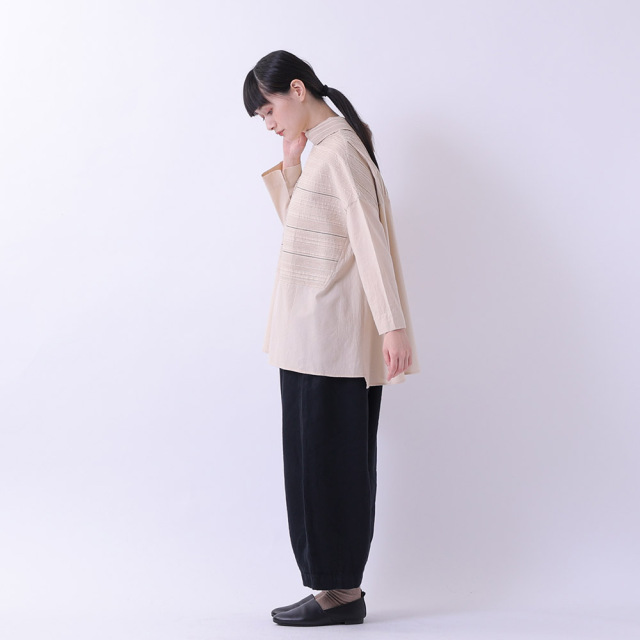 ピンタックのステッチ糸の色を配色にする事でデザインのアクセントになっています。