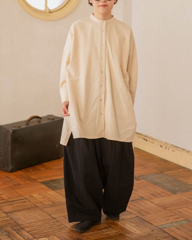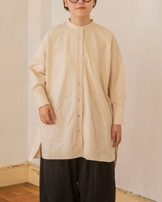aiさん、megさんが「着たときの美しさ」にこだわったバンドカラーブラウス。