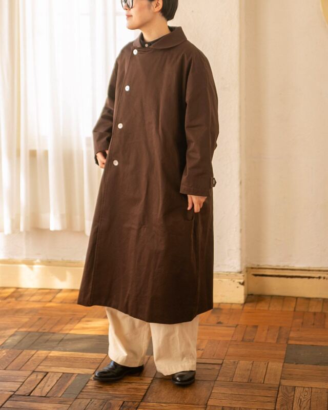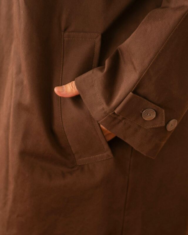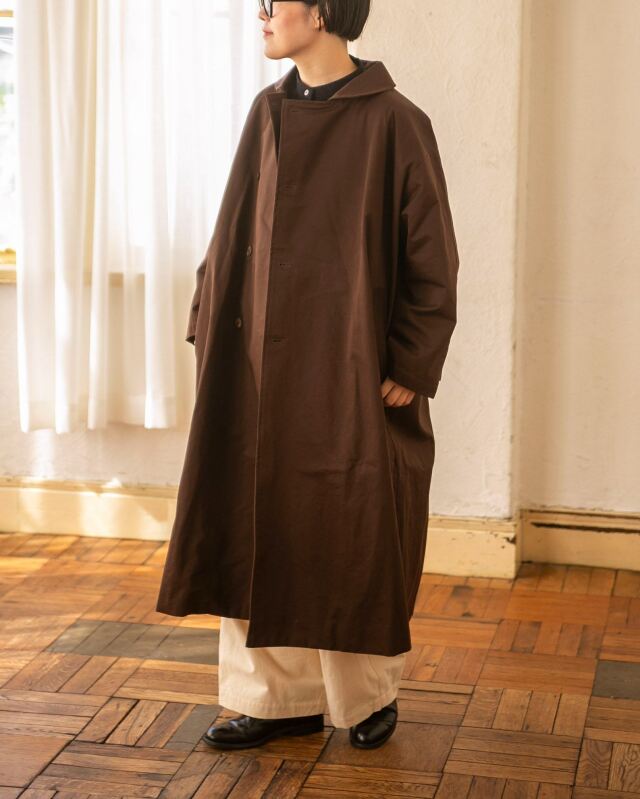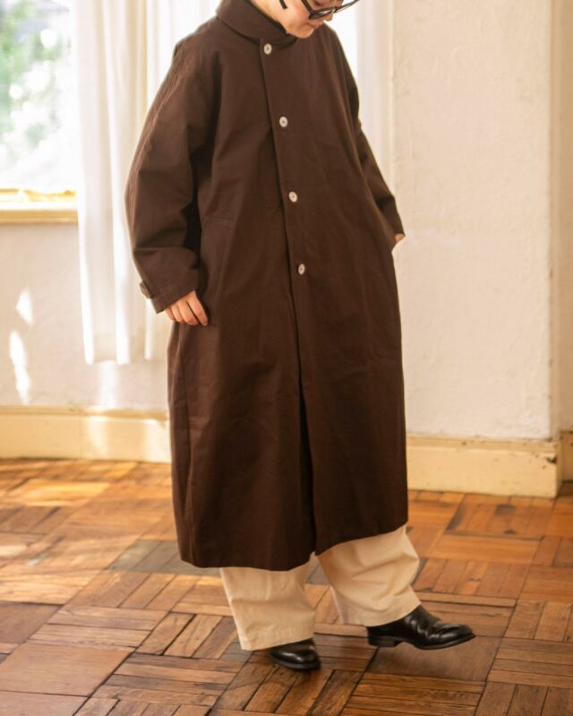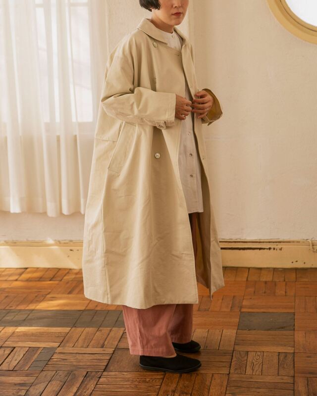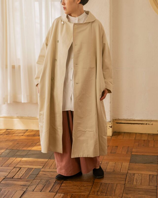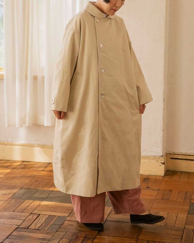 程よいハリと自然な光沢感が美しい、上質なコットンツイル素材を使用したコート。