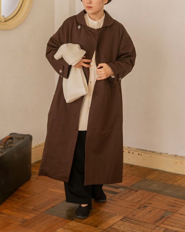 丸みを帯びた衿がクラシカルで上品な印象を与え、シンプルながら女性らしい柔らかさをプラスしてくれます。
