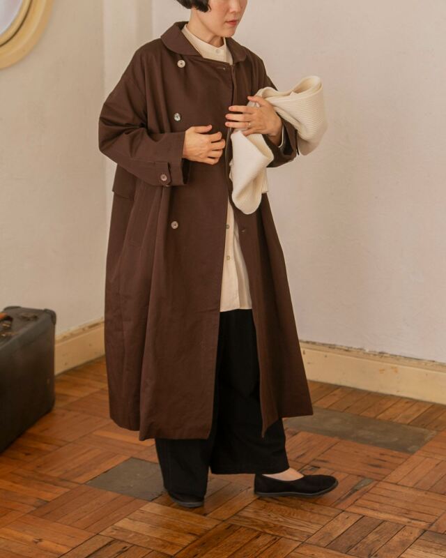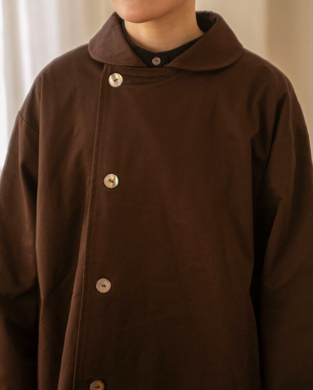 また、コートには珍しい貝ボタンを採用し、シンプルな中に上品なアクセントを加えました。