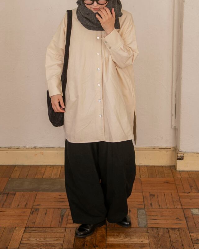 素材にはブラウスと同じ、しっとりとやわらかな肌触りのコットン起毛を使用。