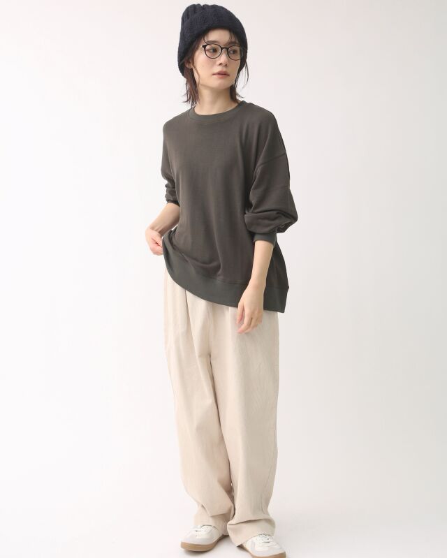 やさしい素材感と抜け感のあるフォルムで、大人のリラックススタイルにぴったりなアイテムです。