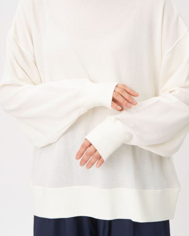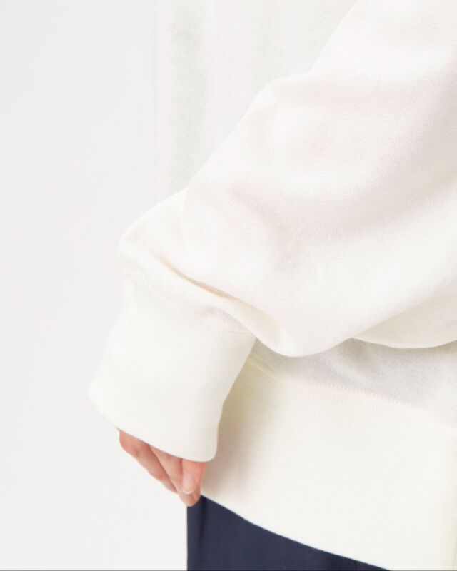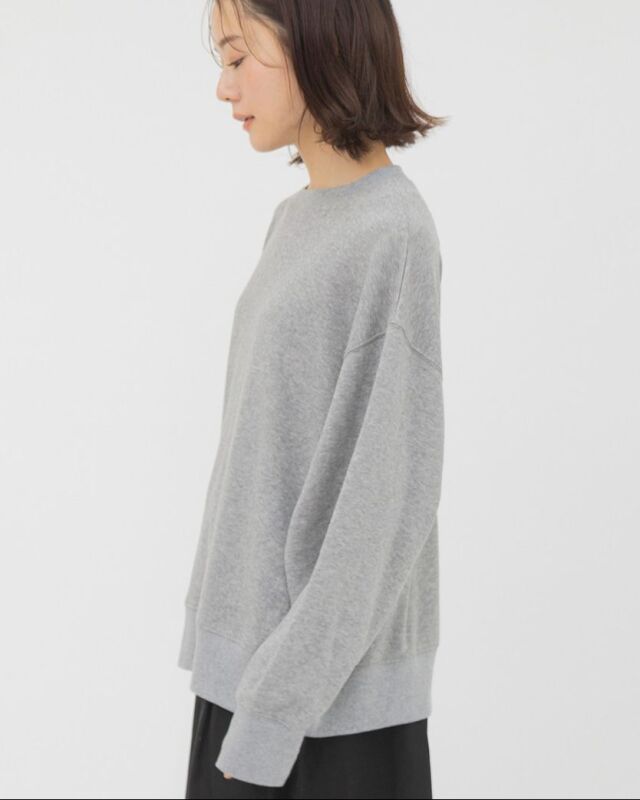 コットンとカシミヤをブレンドした、ふんわりやさしい肌触りの裏毛素材を使用。