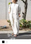 コットンリネンのほどよくしっかりとした生地を使用したオールインワン。さらりとした肌触りで、心地よく着ていただけます。