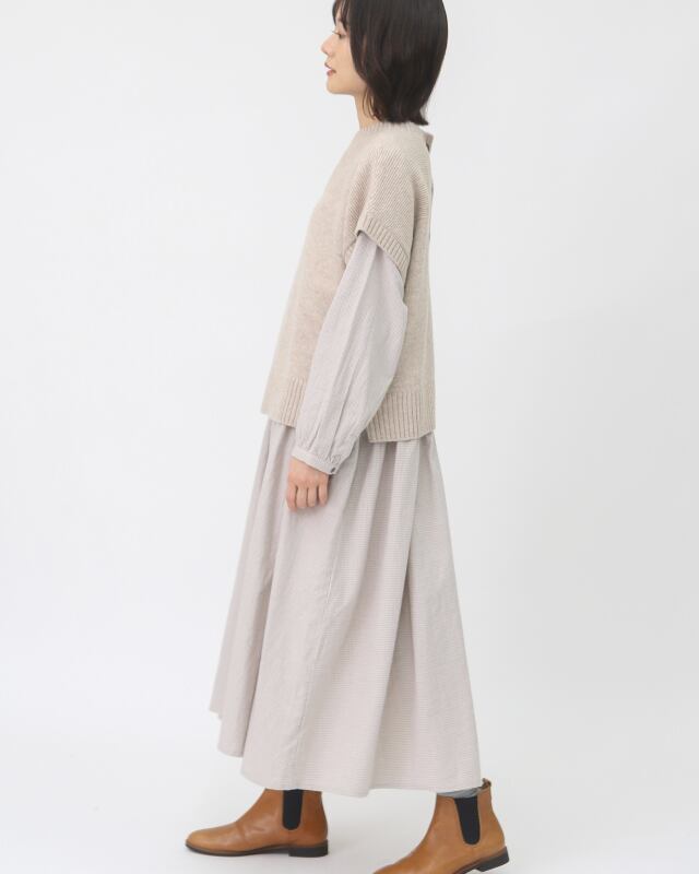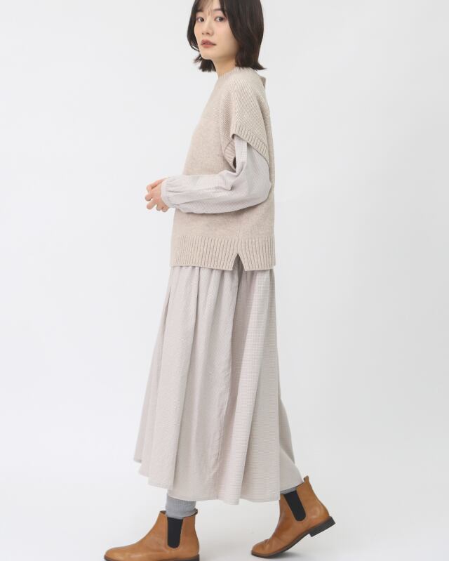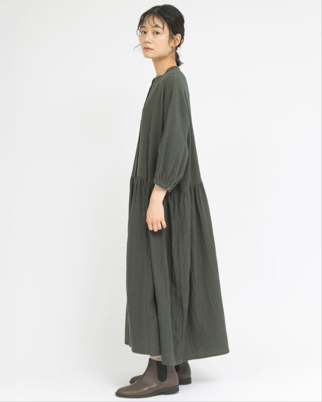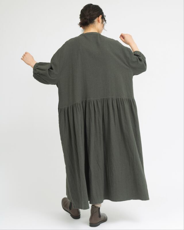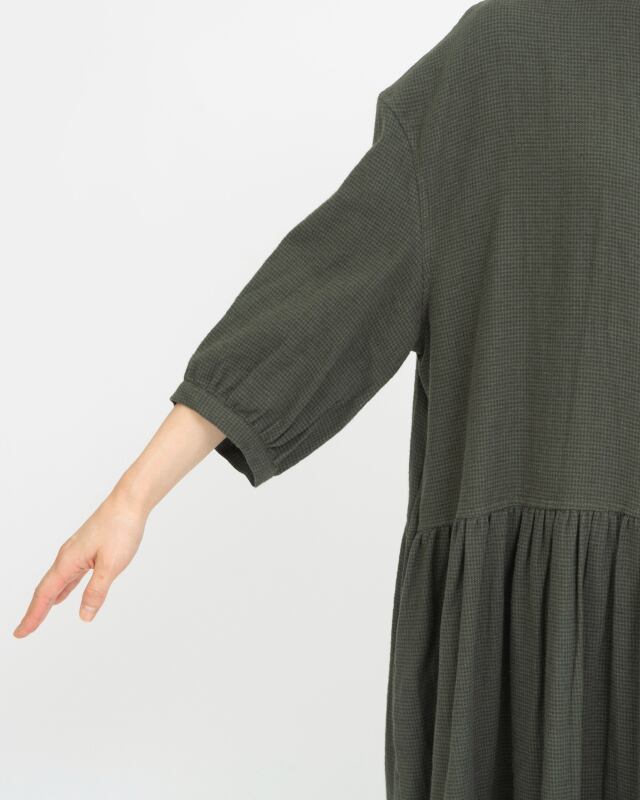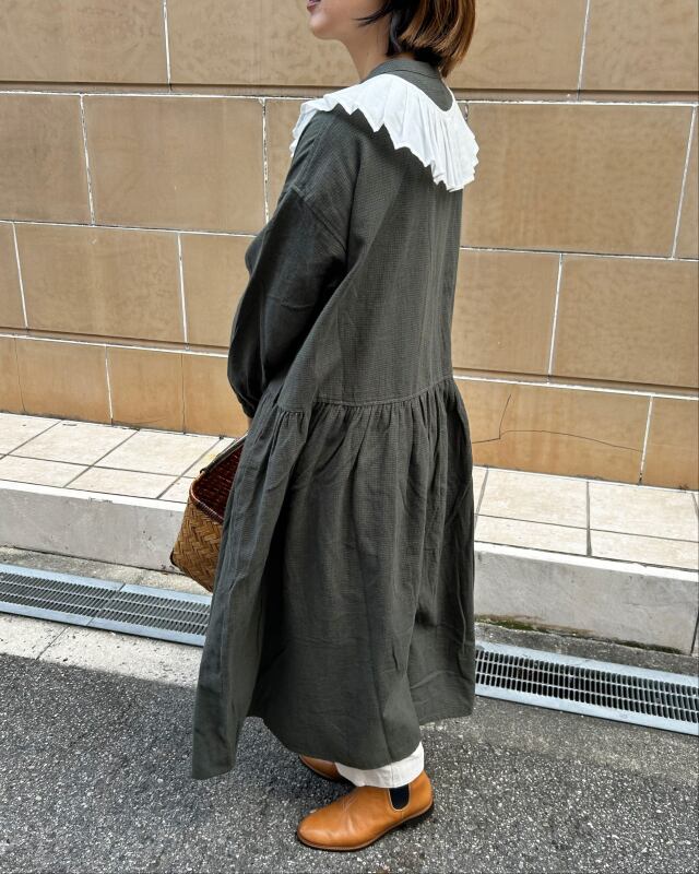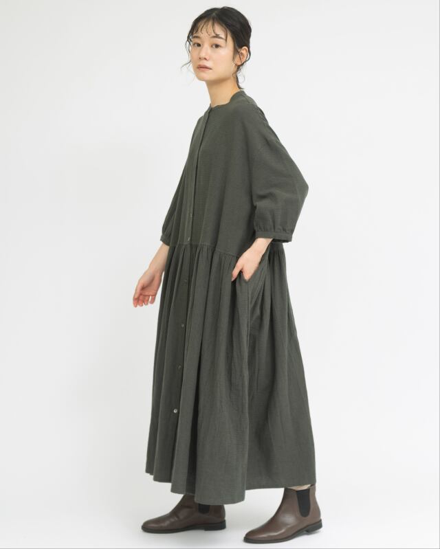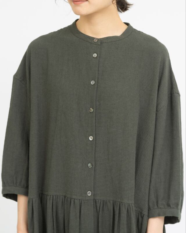 コットンリネン糸で織り上げた千鳥格子柄に、表面をほんのり起毛させたTUTIE.オリジナル素材のワンピース。
