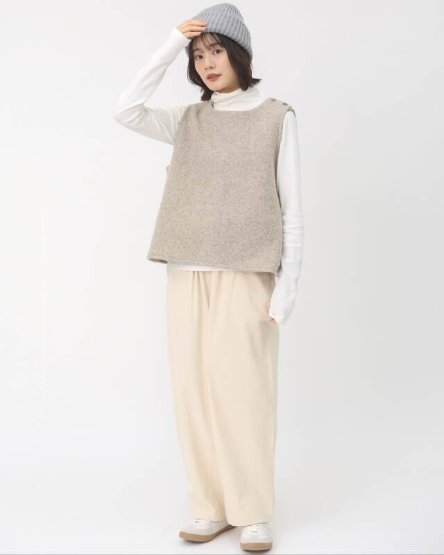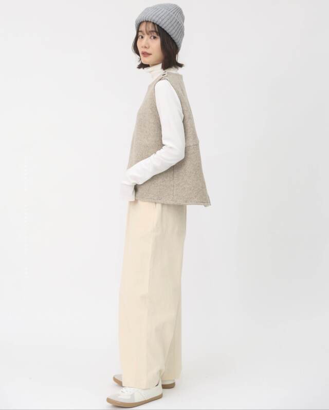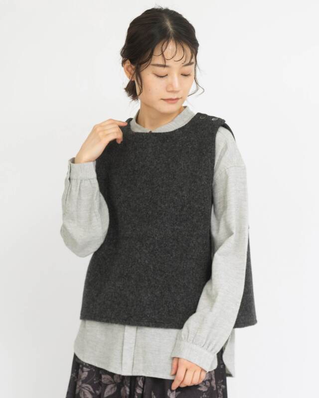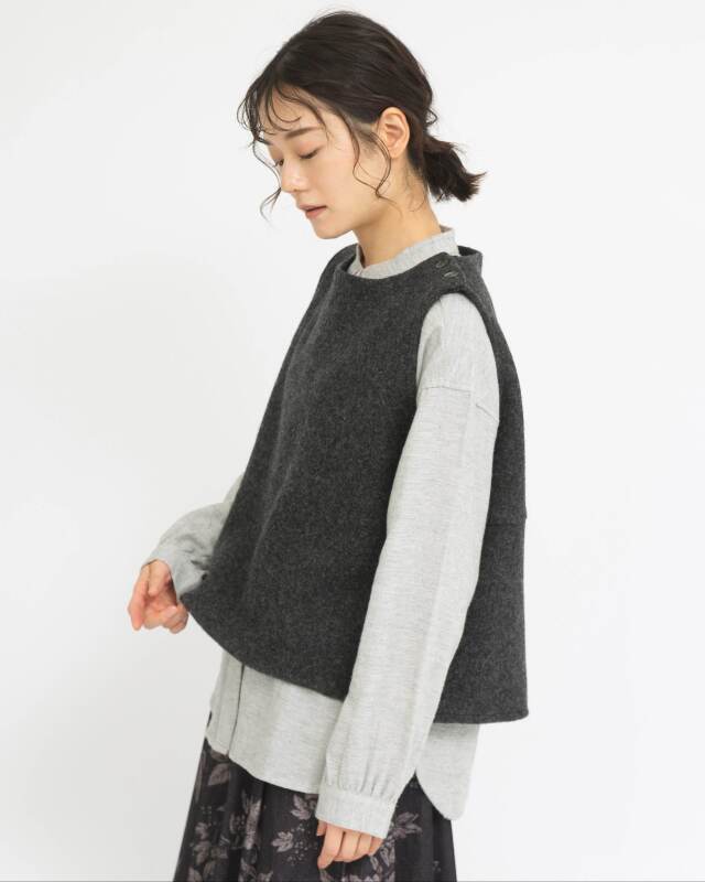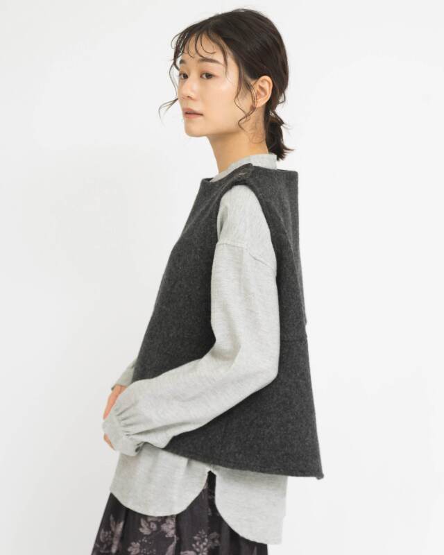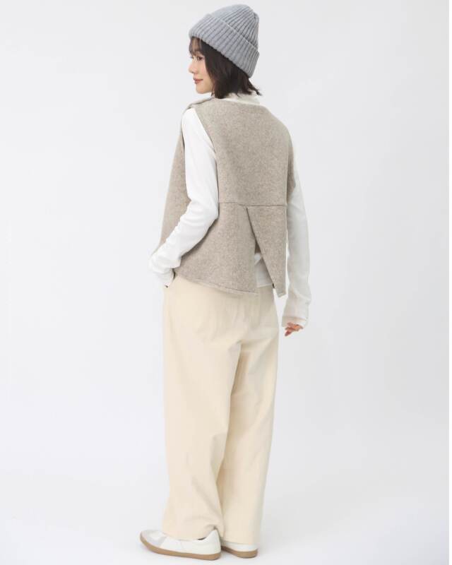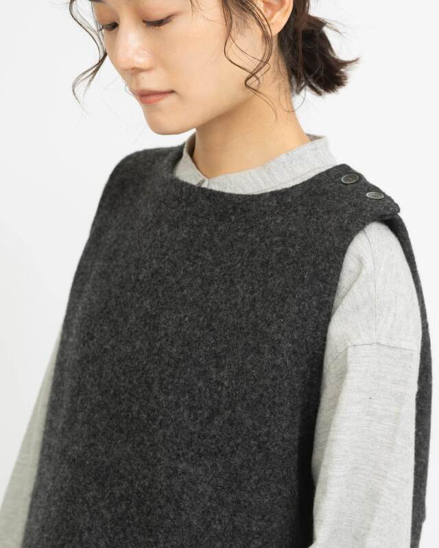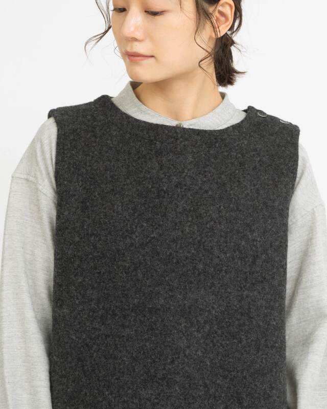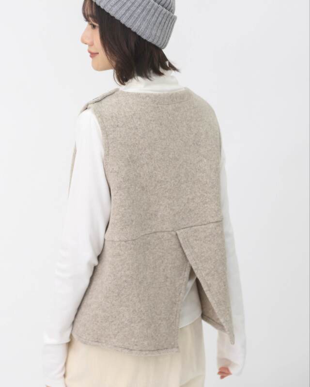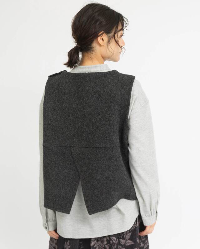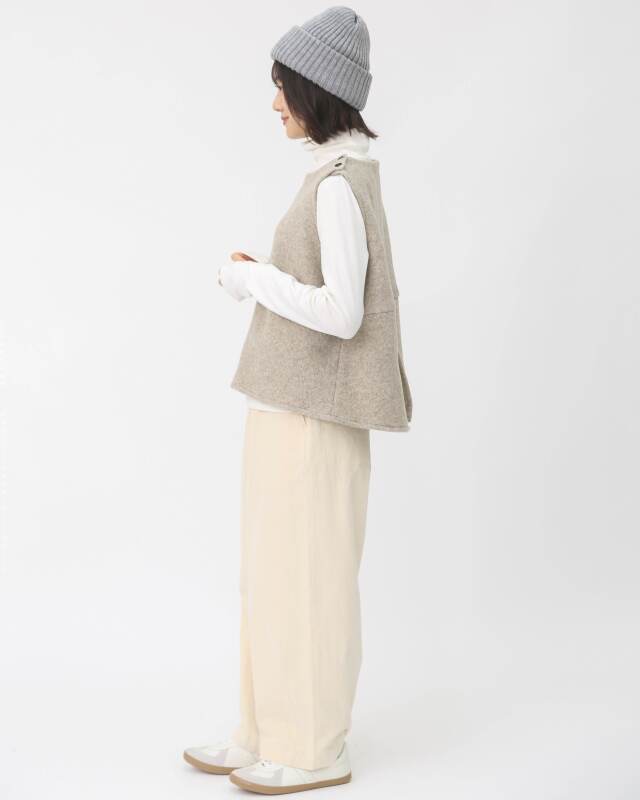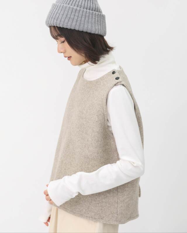 ウール100%のしっかりとした質感が魅力のあたたかみのあるベスト。