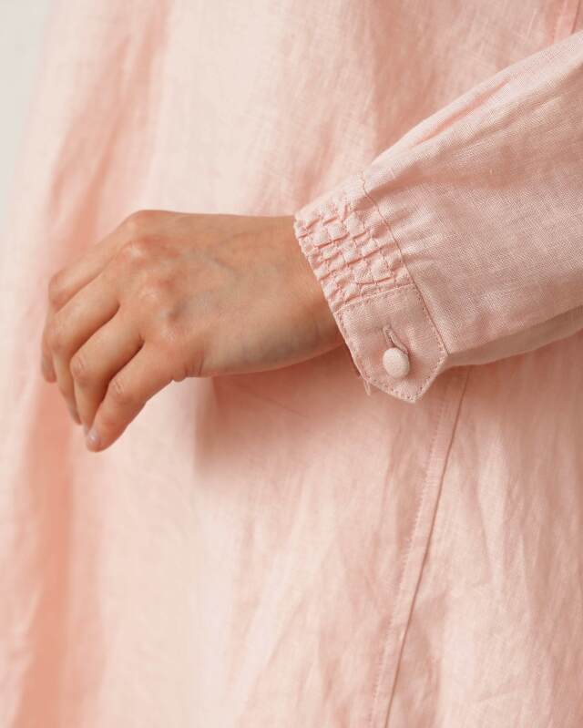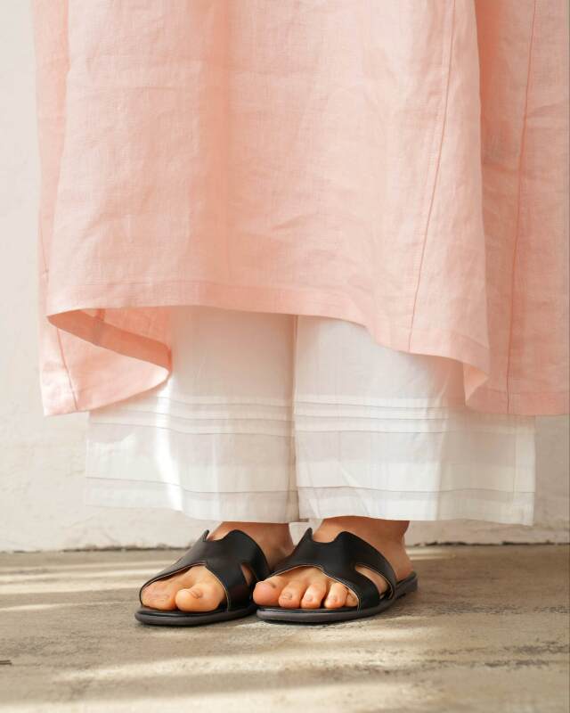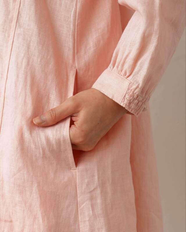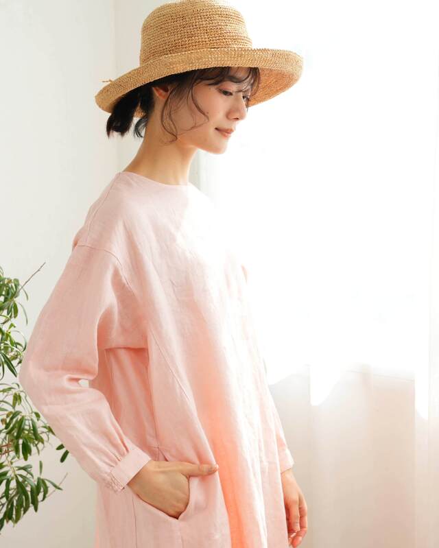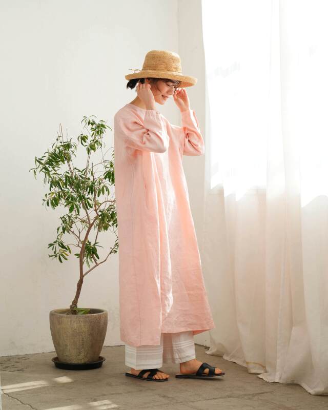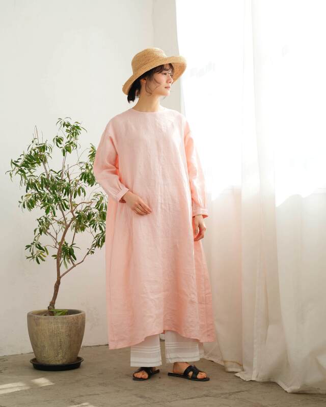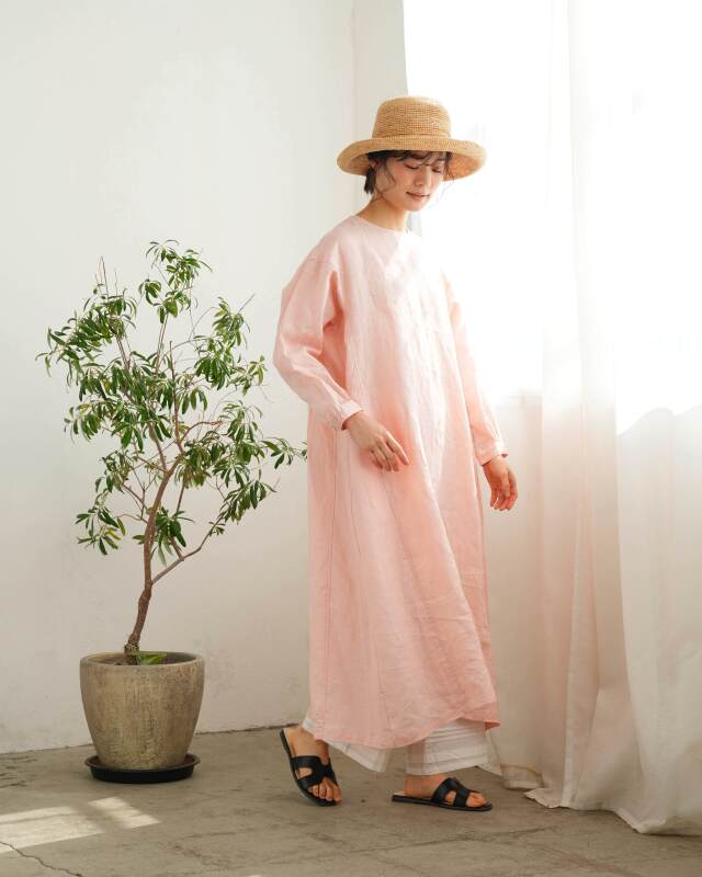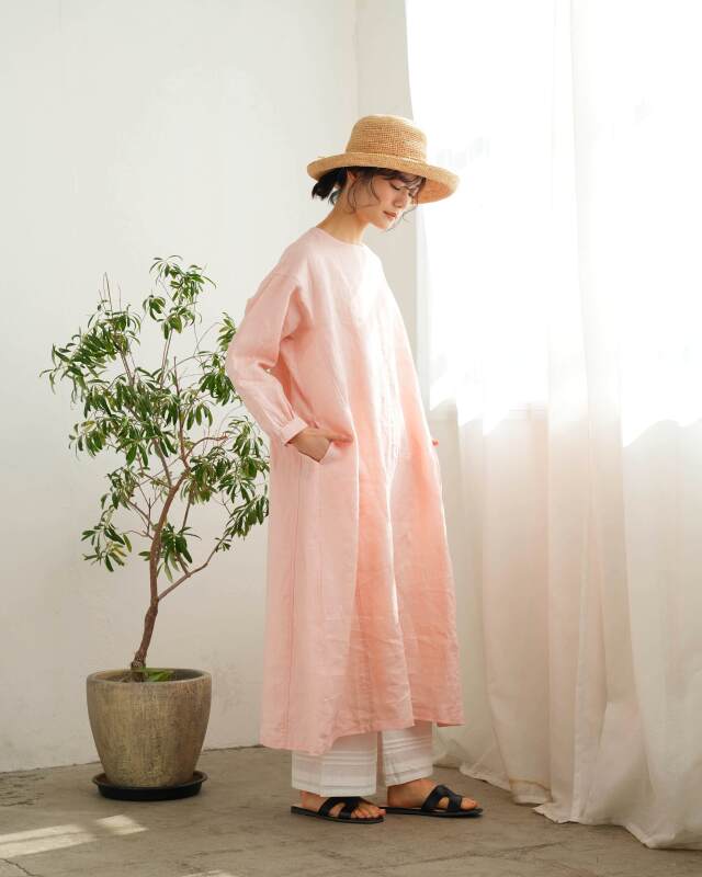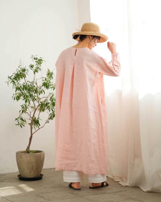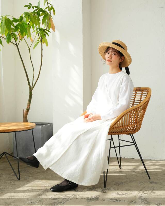 リネン素材を使用した、落ち感のあるAラインシルエット。