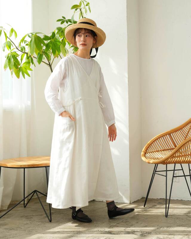今回のコラボレーションで誕生した、エプロンと同時に企画したワンピースです。