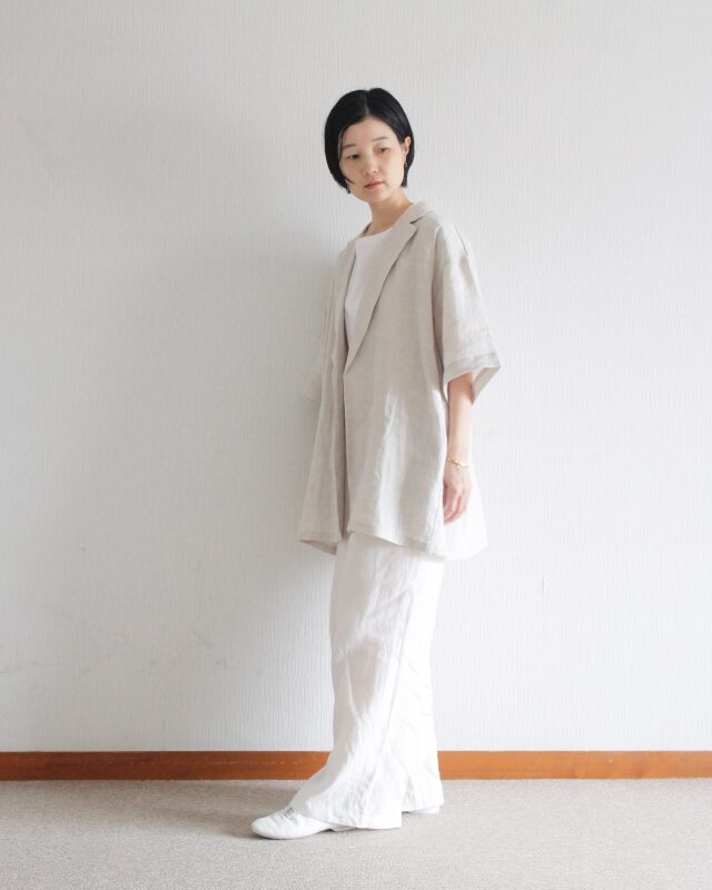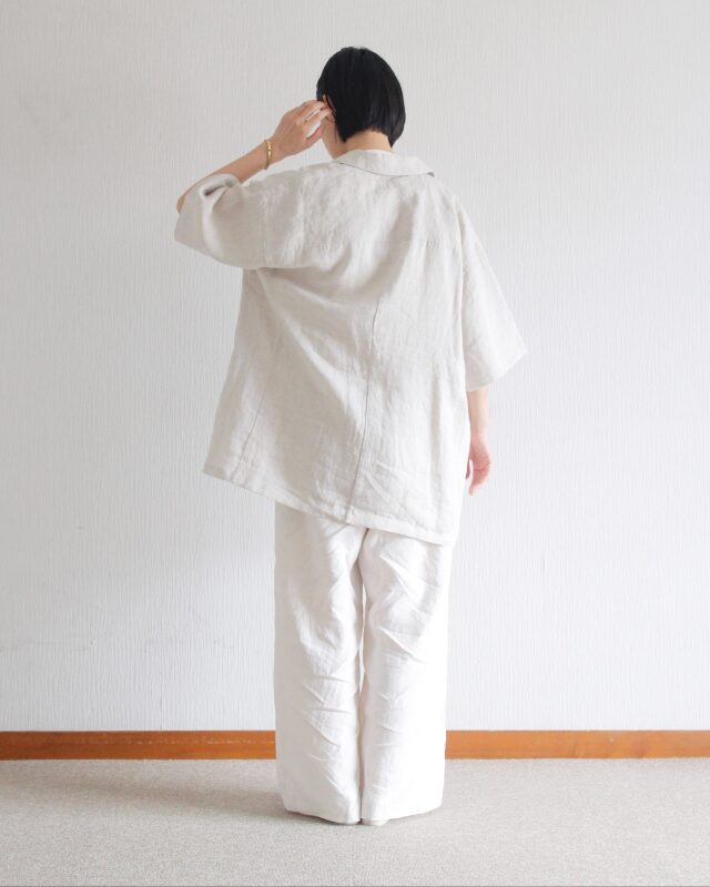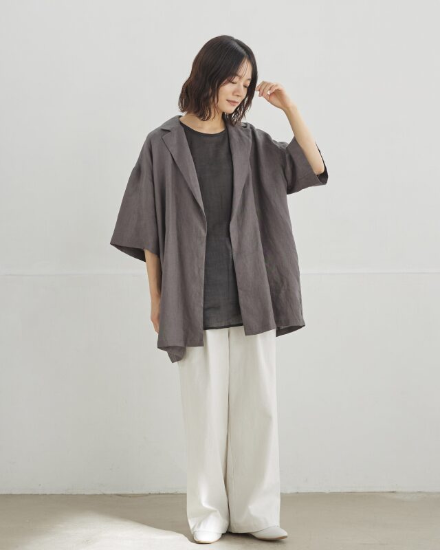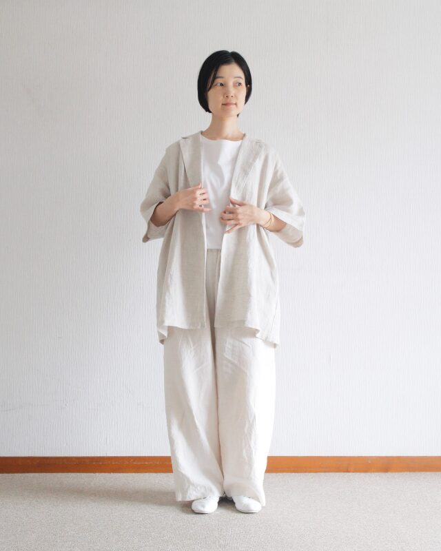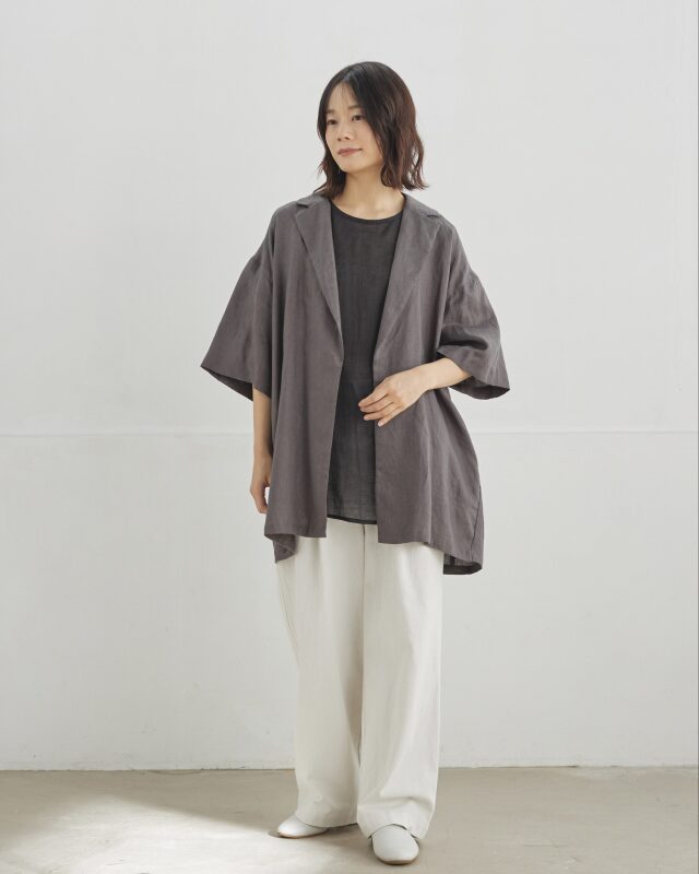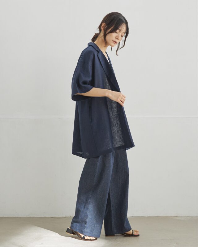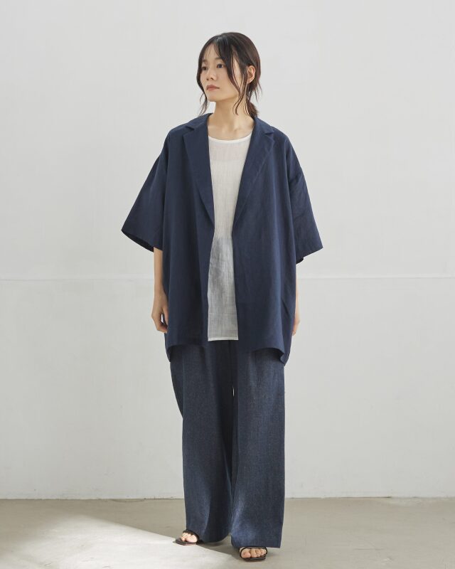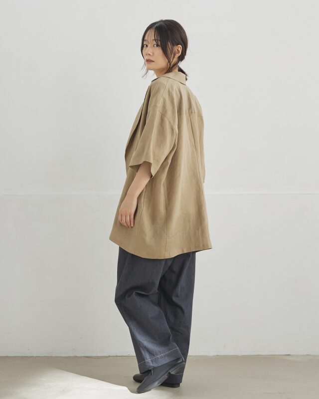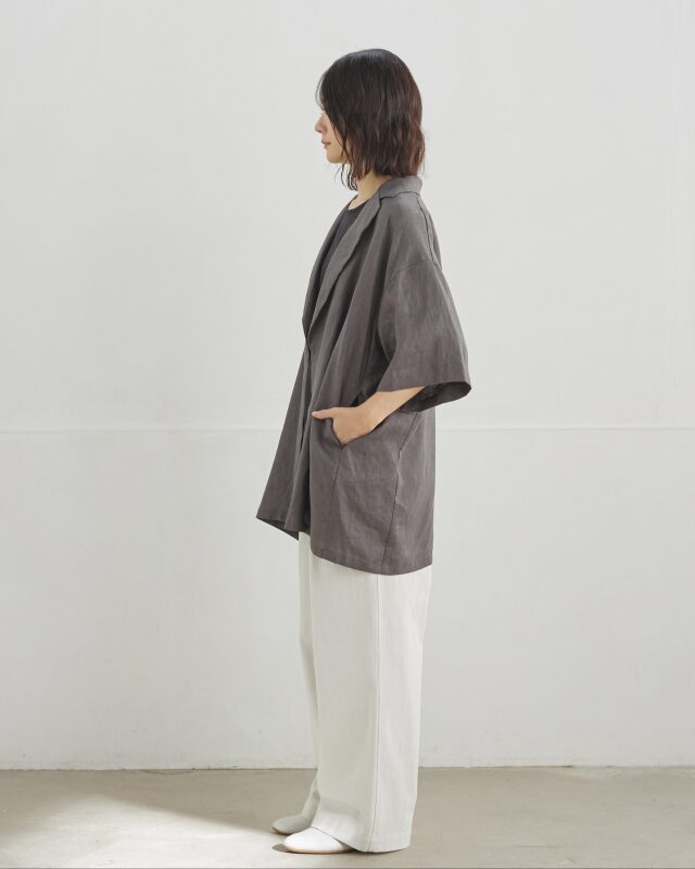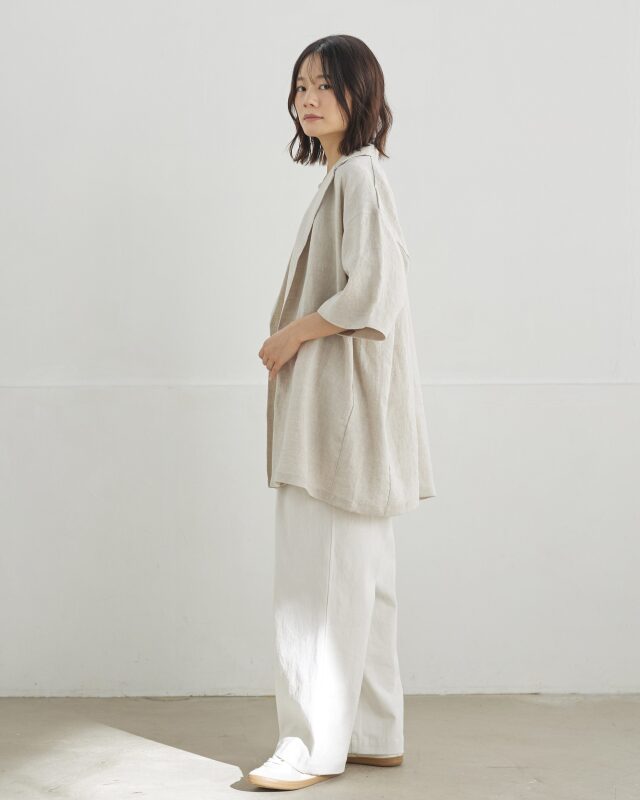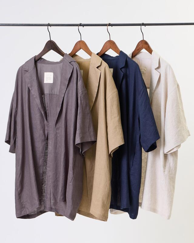 麻100%の天然素材を使用し、清涼感と軽さを大切に仕上げたジャケット。