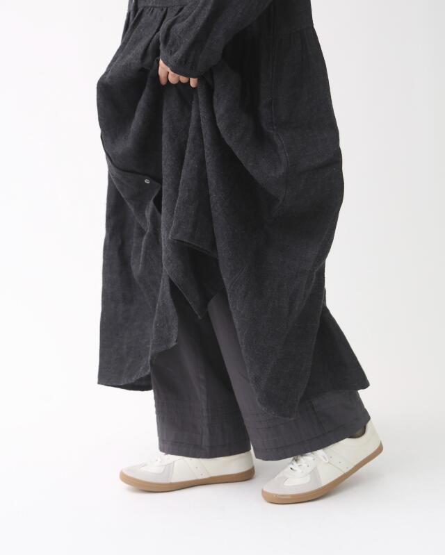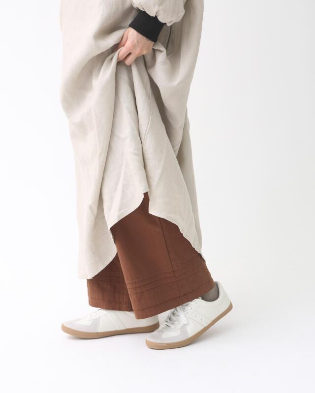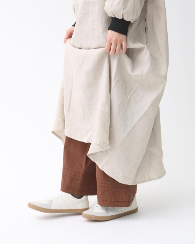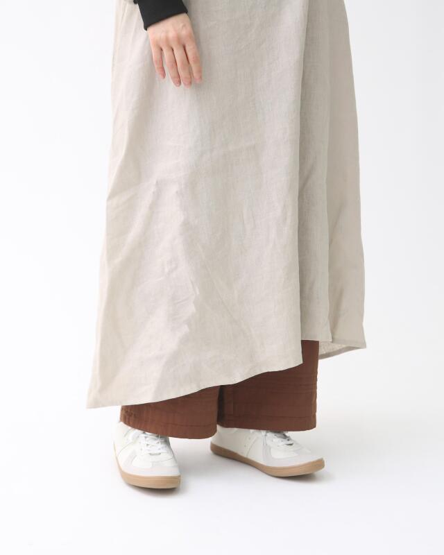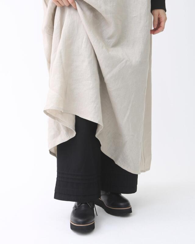 裾にはさりげないピンタックを施しており、ワンピースやスカートの裾からのぞかせるだけでコーディネートのアクセントに。
