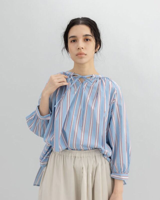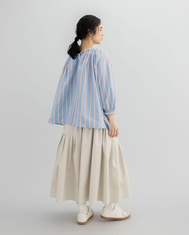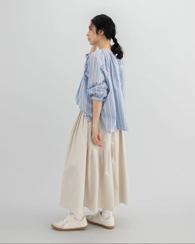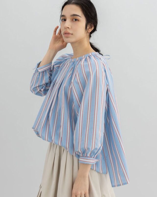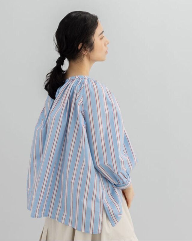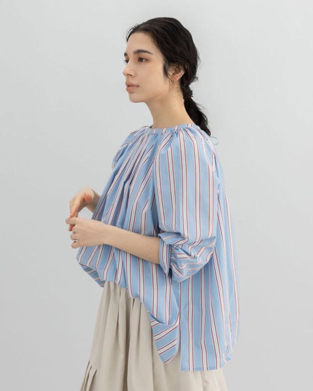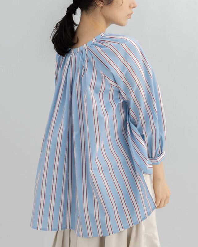 前でも後ろでも、表情を変えて楽しめるストライプブラウス。