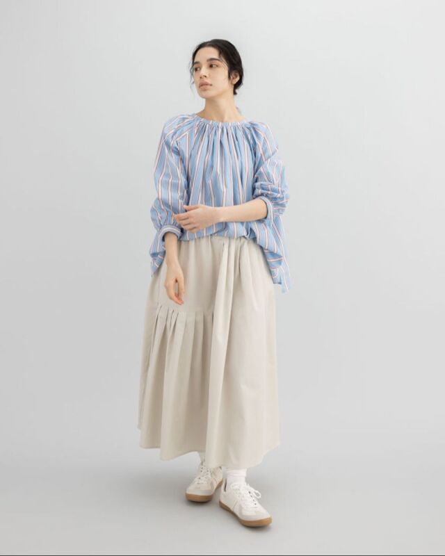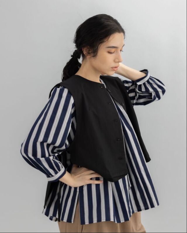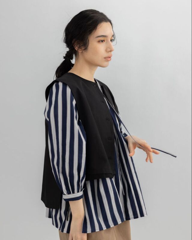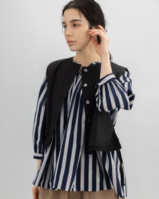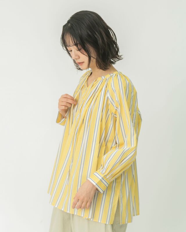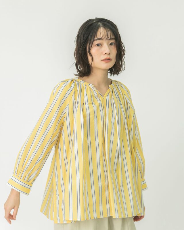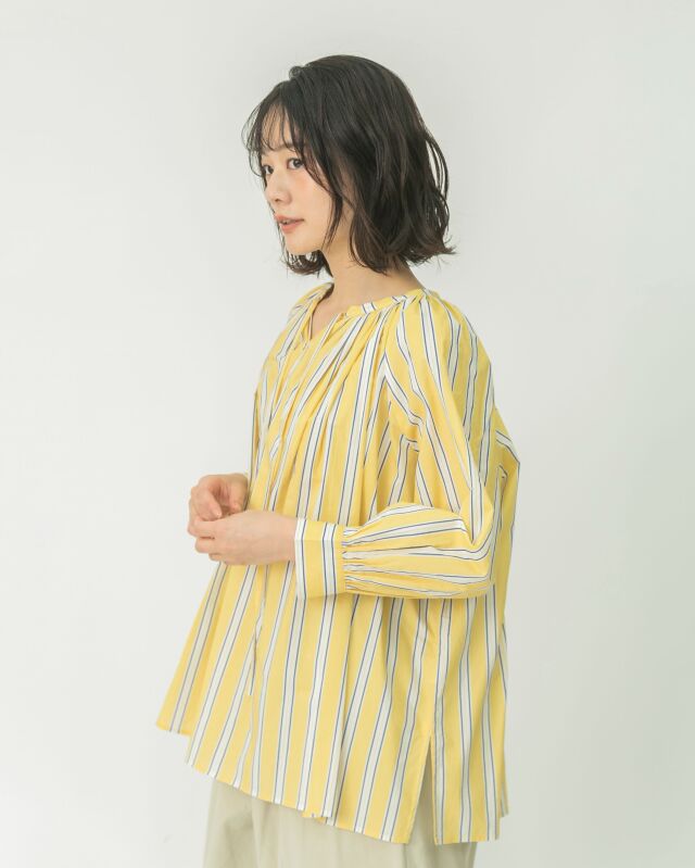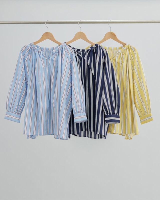 前でも後ろでも、表情を変えて楽しめるストライプブラウス。