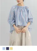 肩まわりを楽にするラグランスリーブや、たっぷりギャザーを寄せた衿ぐりが生み出す、ふんわりやさしいシルエットも魅力です。