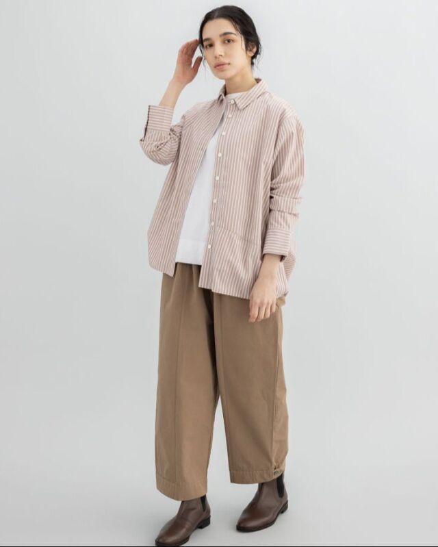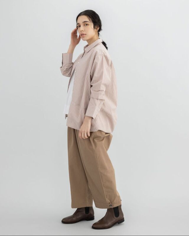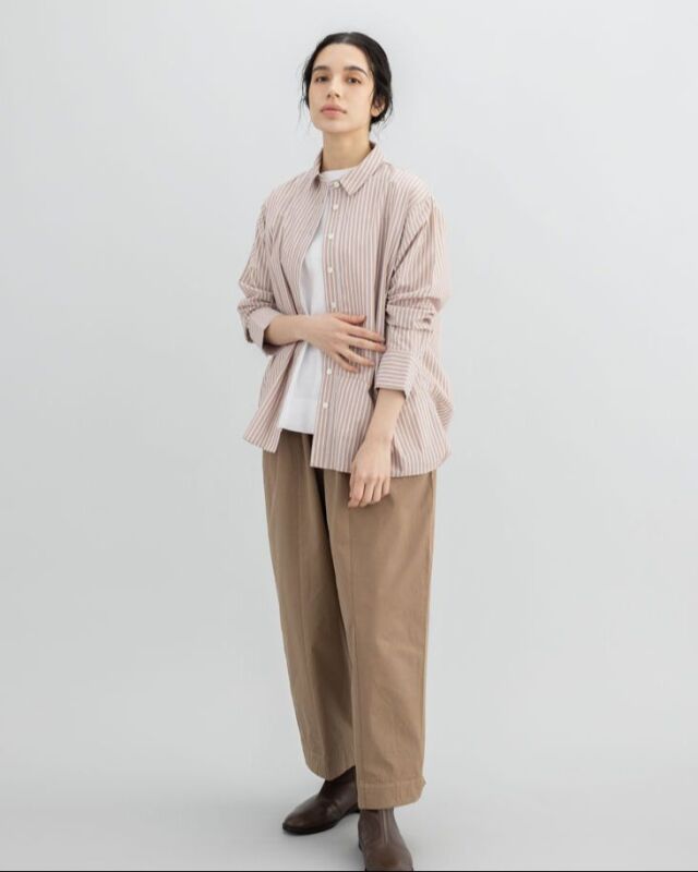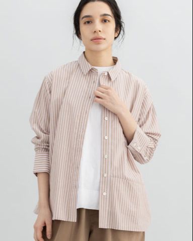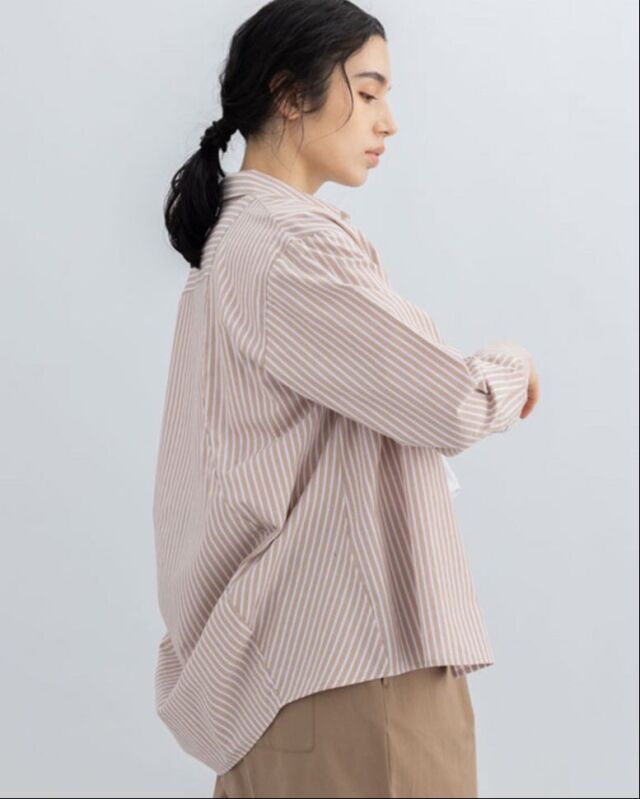 肌触りの良いコットンストライプ素材を使用した、軽やかな着心地のシャツです。