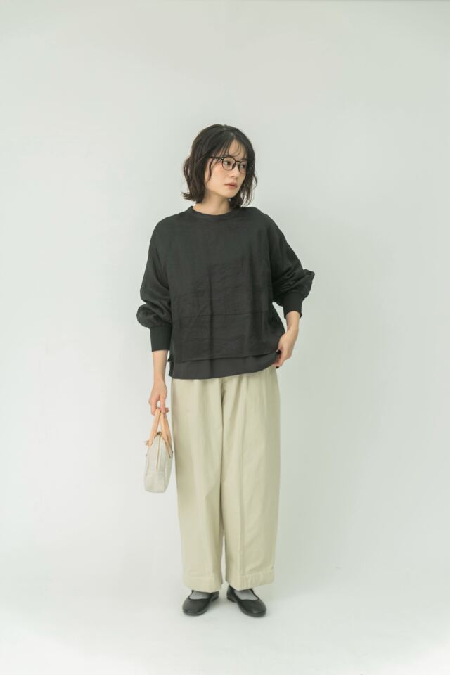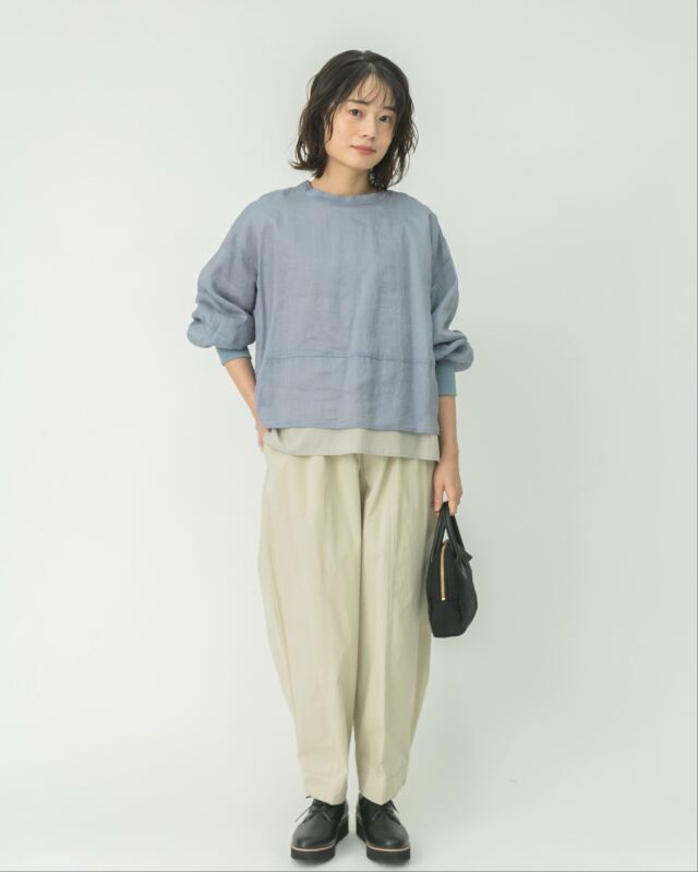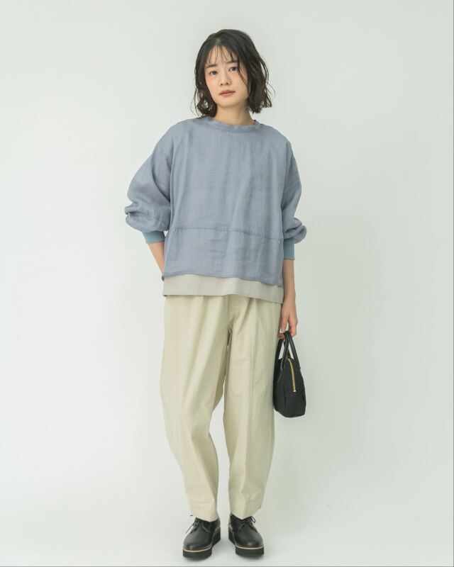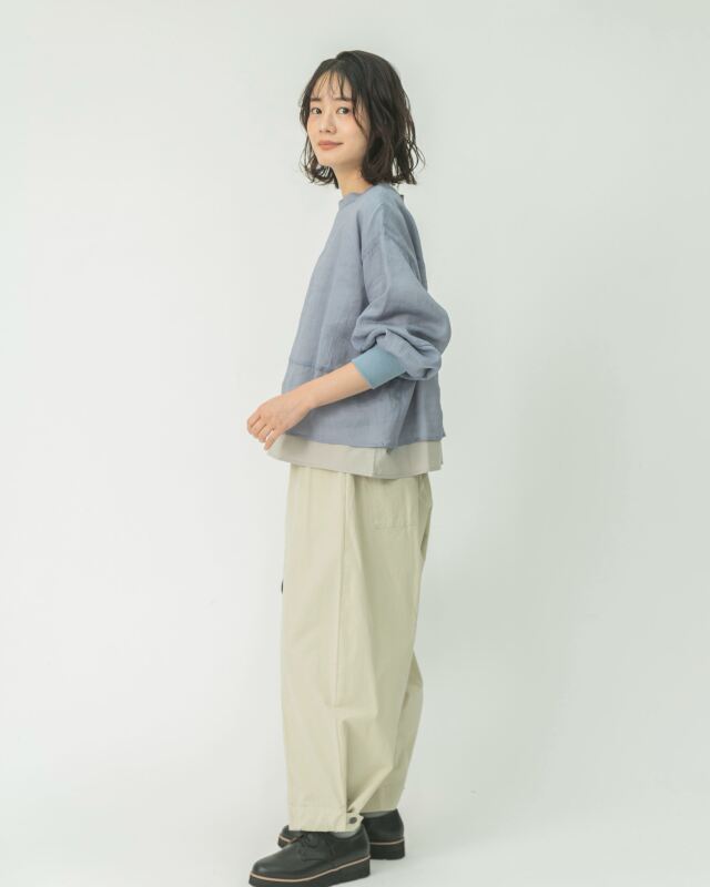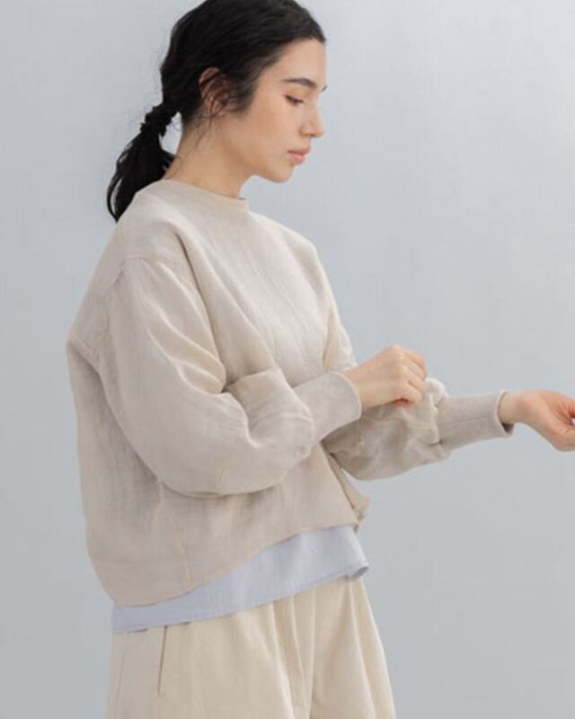 ほんのり透け感のあるラミー素材と、やわらかなコットンを重ねたプルオーバー。