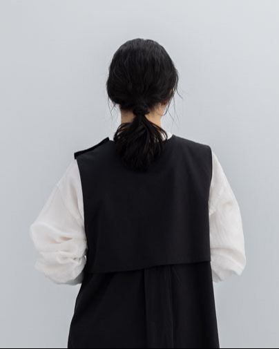裾からのぞくレイヤードインナーが、着こなしのアクセントに。