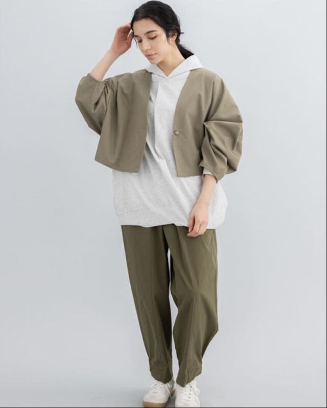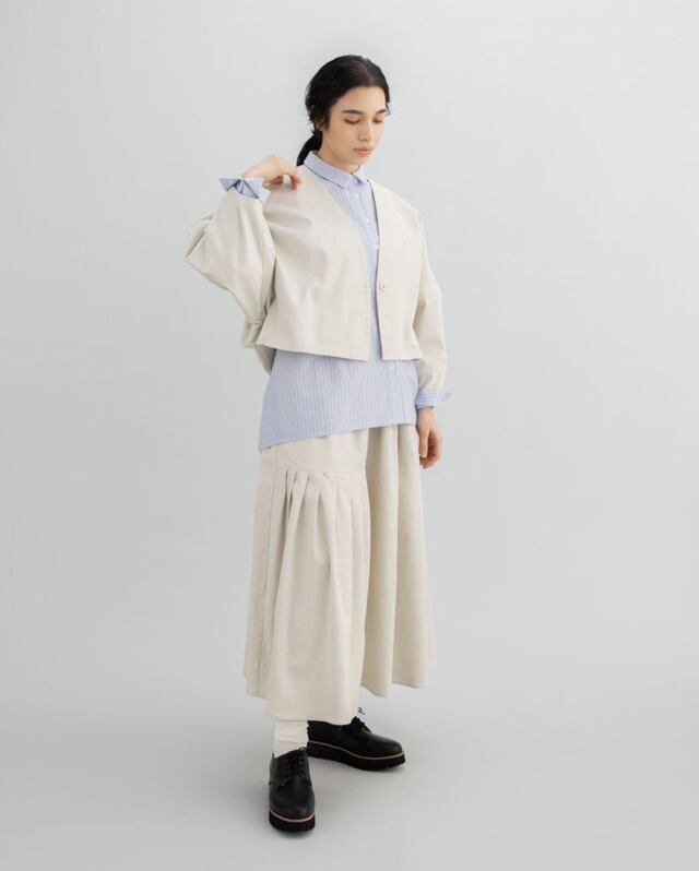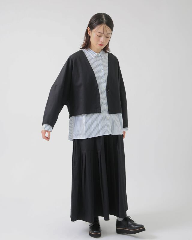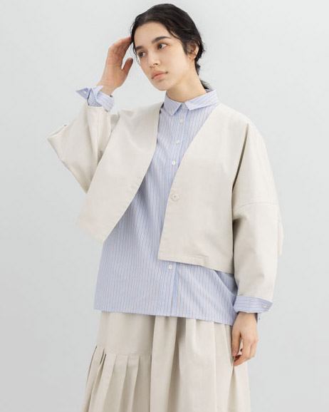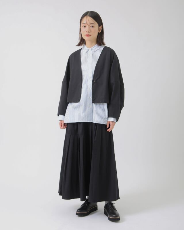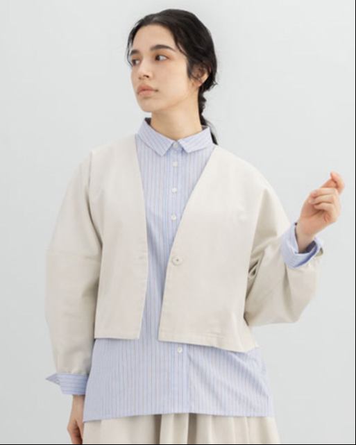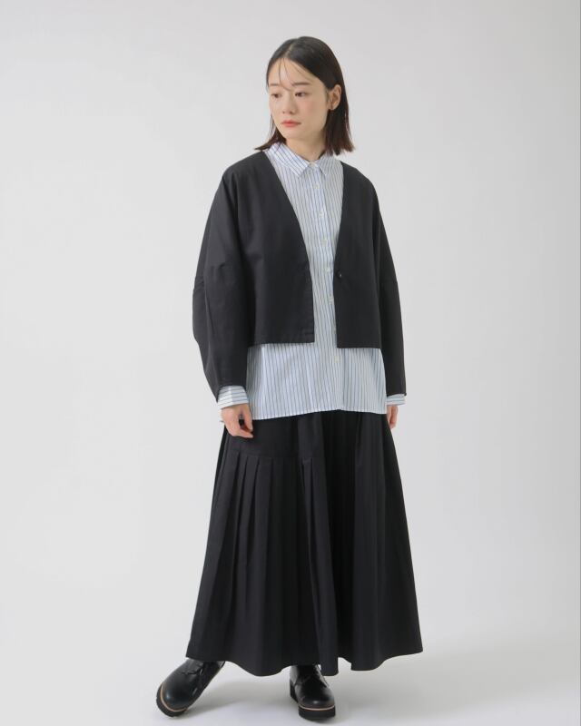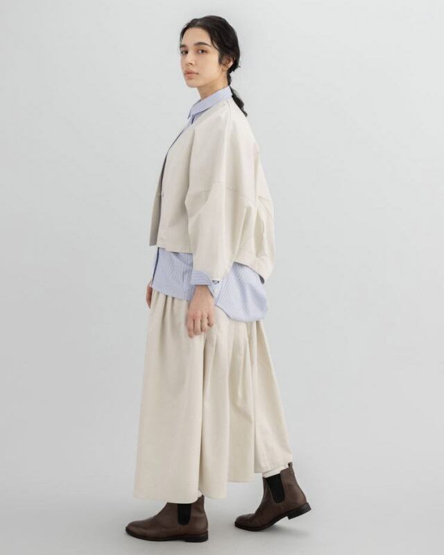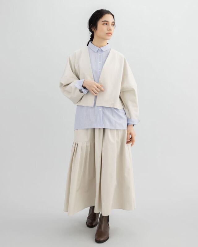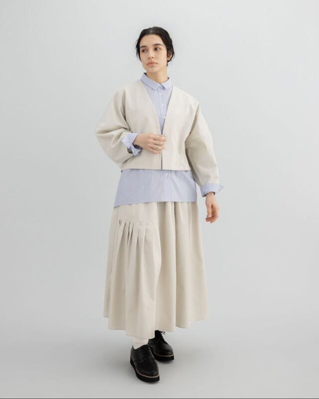 同素材のベスト・パンツ・スカートも展開しており、セットアップとしても楽しめる一着です。