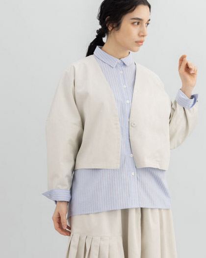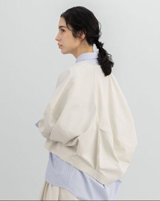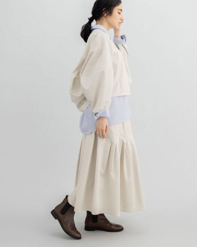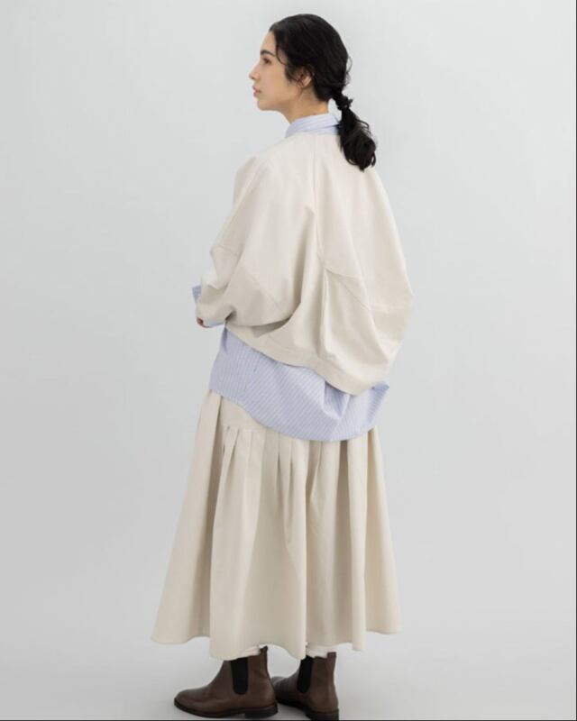 袖にも切替えを施し、全体に丸みを持たせた柔らかなシルエットに。