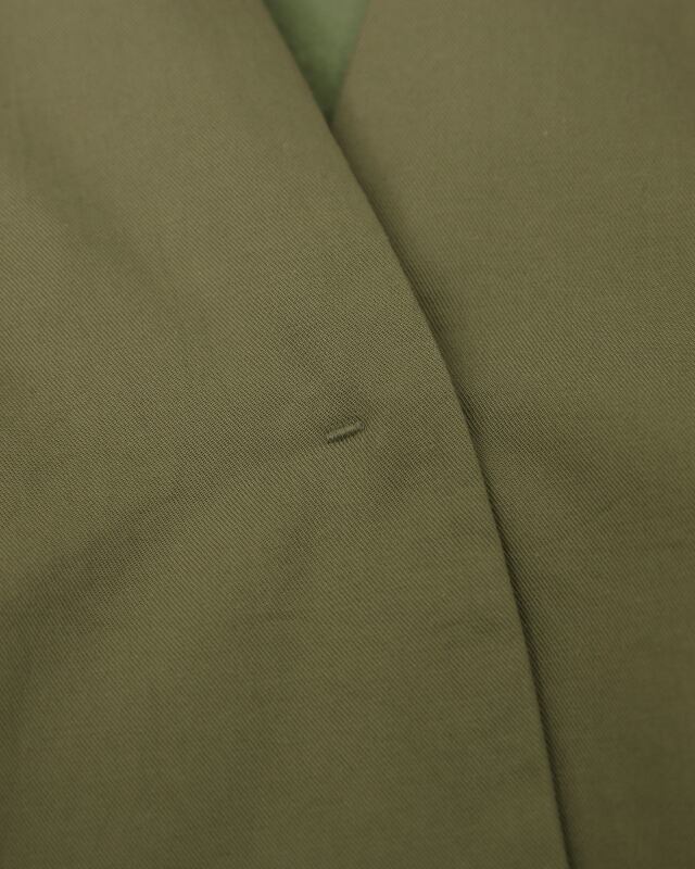 再生繊維とコットンをブレンドした糸を使用し、ほどよい光沢と上品な風合いに仕上げた素材のジャケット。