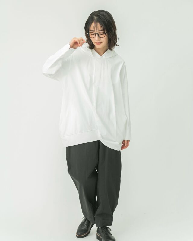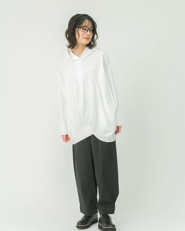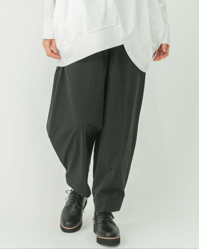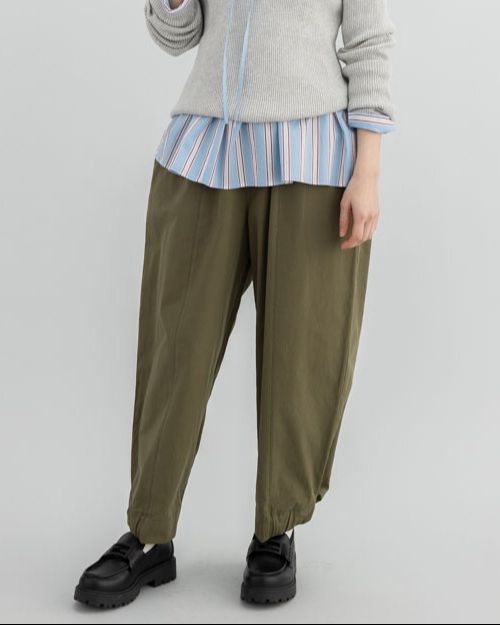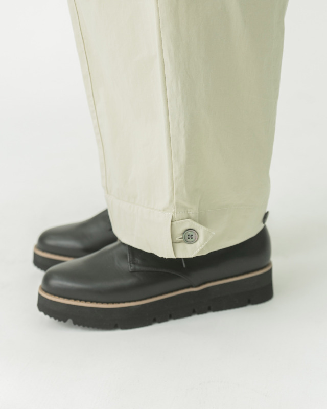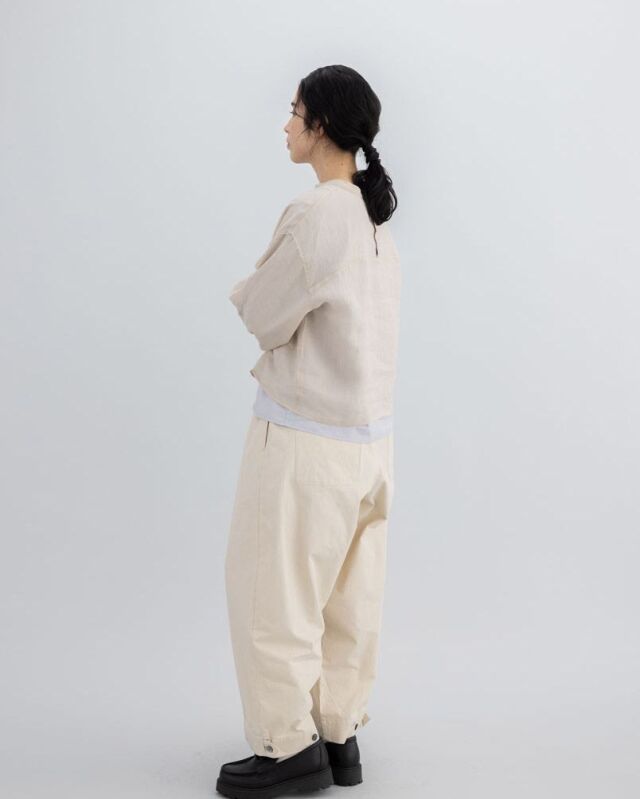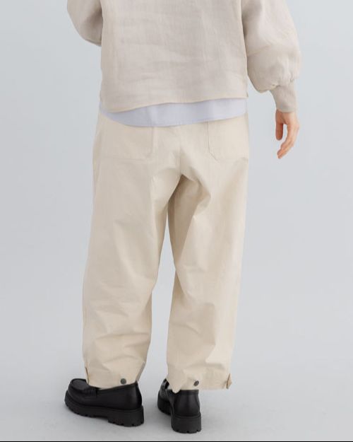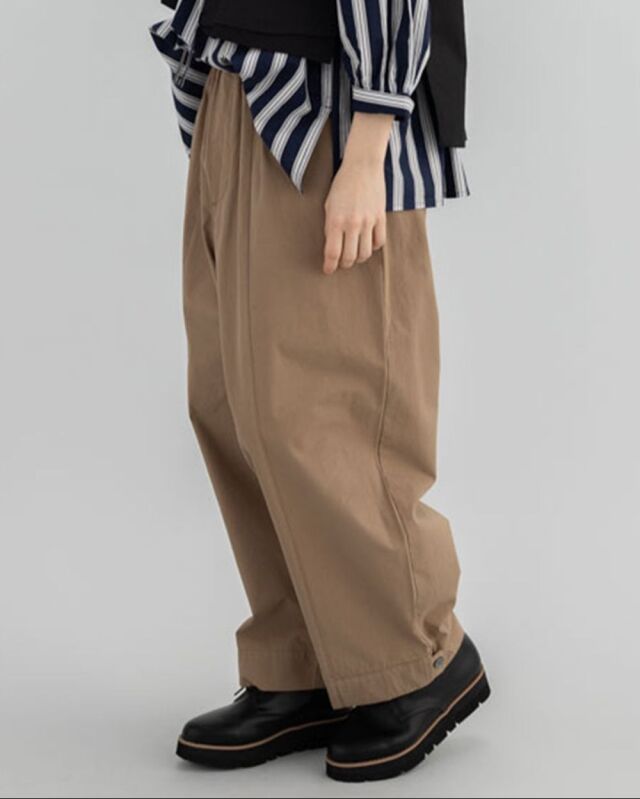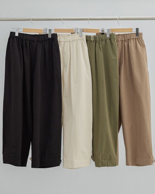 ハリ感のあるペーパーライクな風合いが魅力の、コットン100%パンツ。