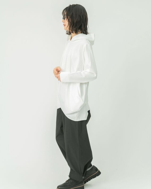 裾にはタブとボタンをあしらい、シルエットを自在に変えられるデザインです。