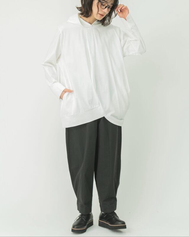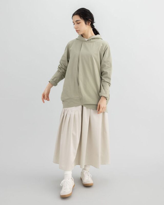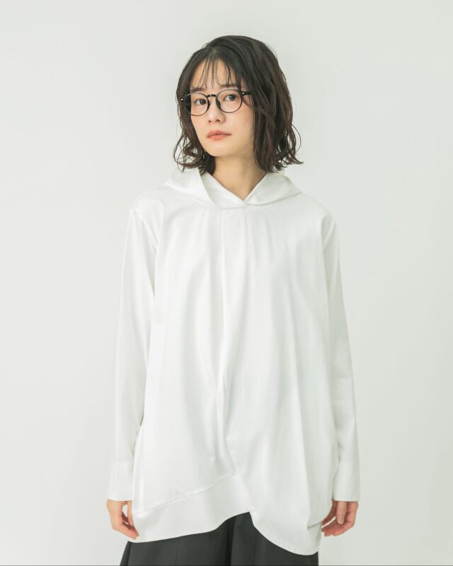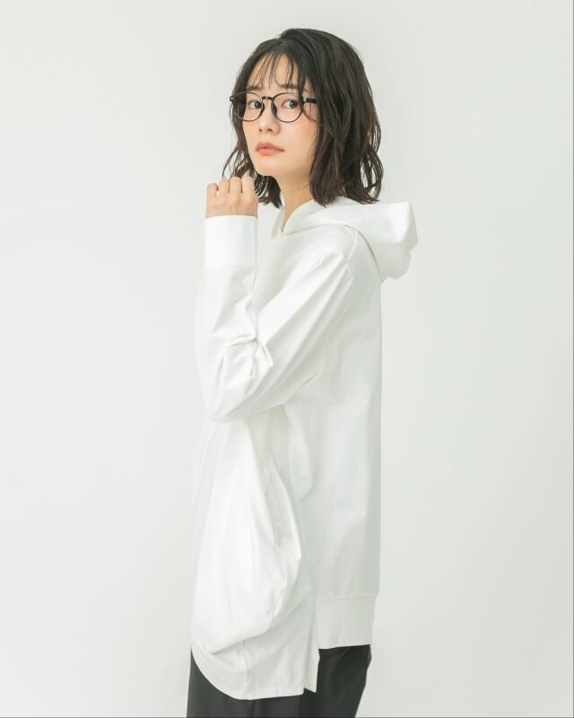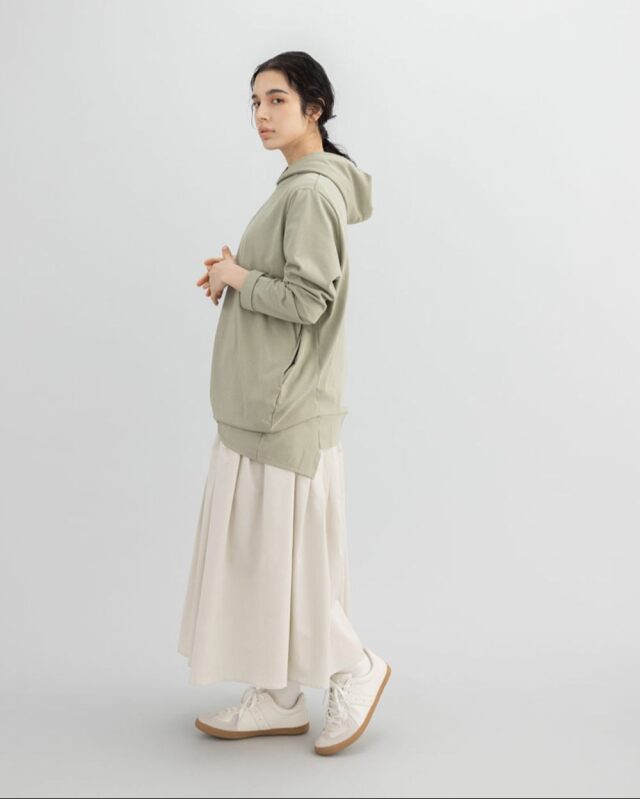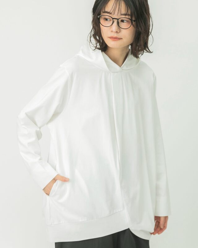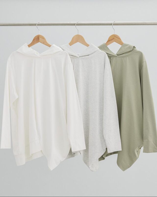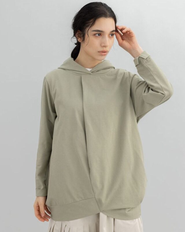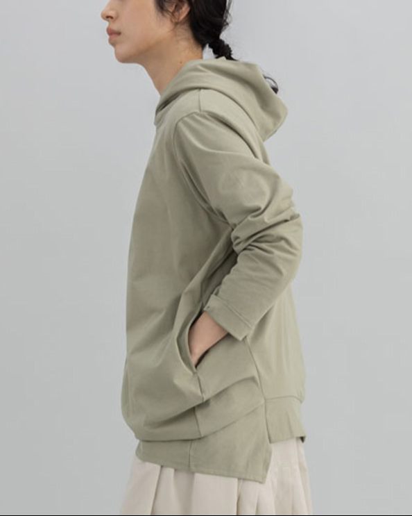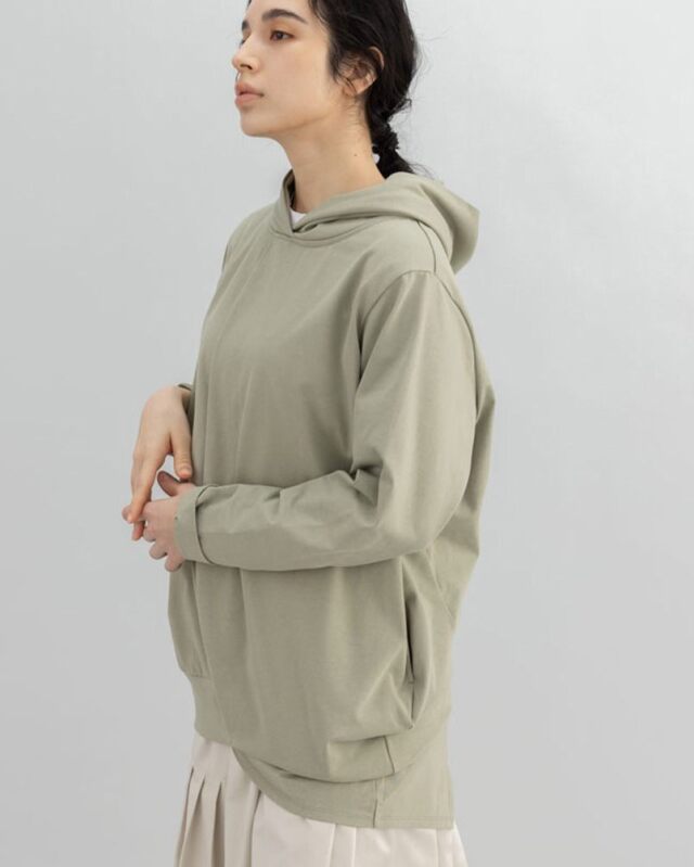 コットンと植物由来のSorona®(ソロナ)を使用した、肌触りの良いカットソーフーディー。