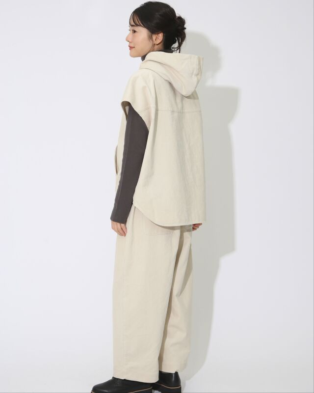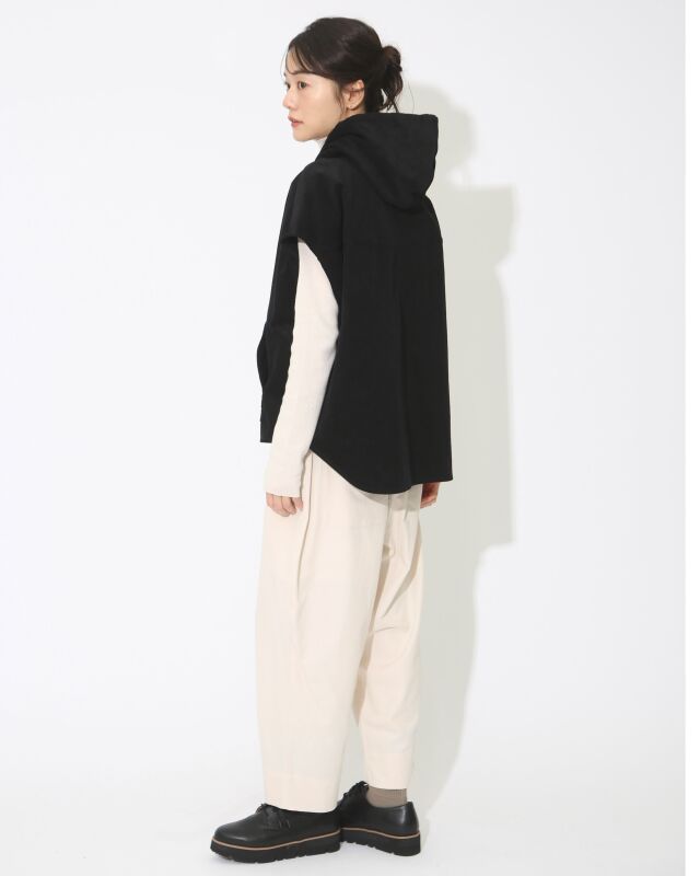 ゆったりとしたシルエットで、シャツやニットとの重ね着にもぴったり。