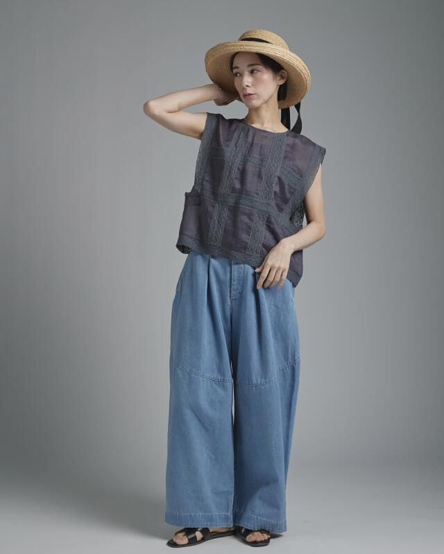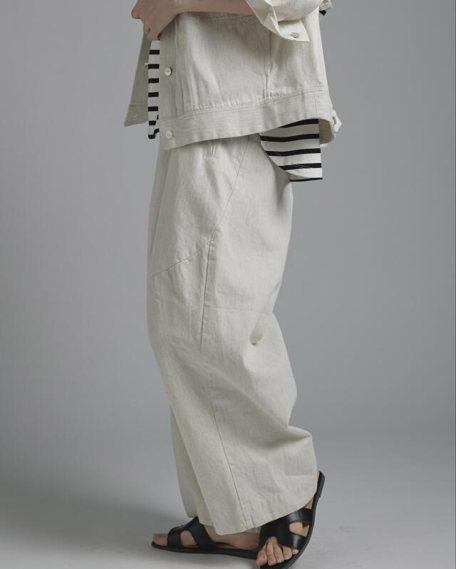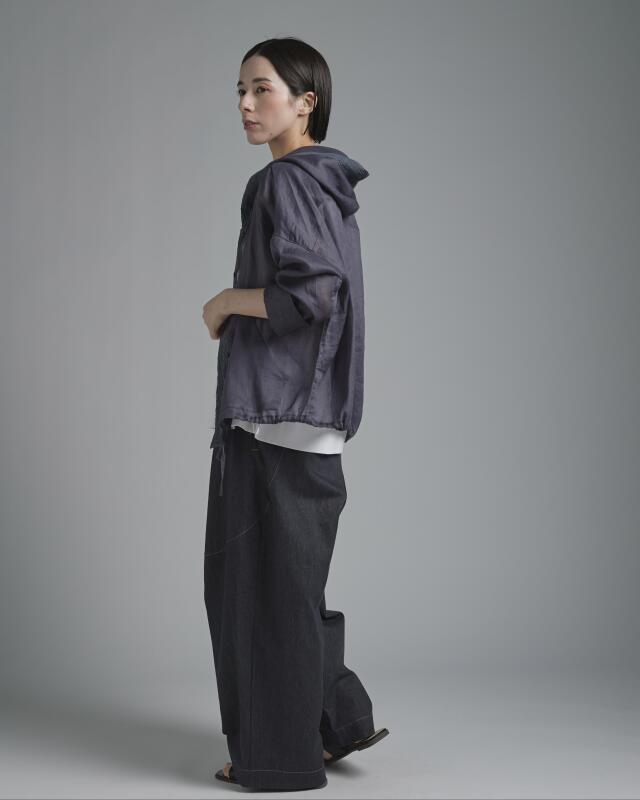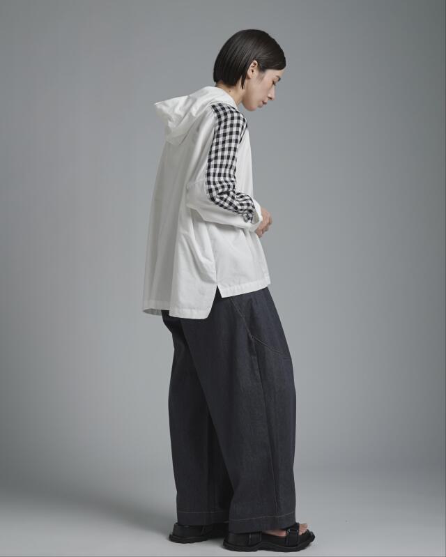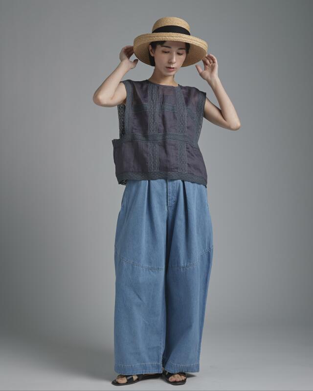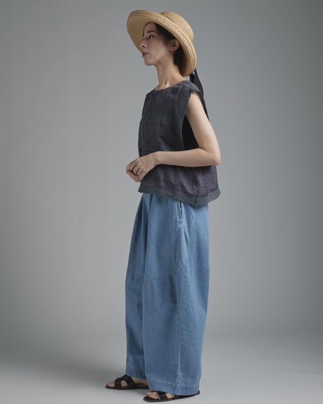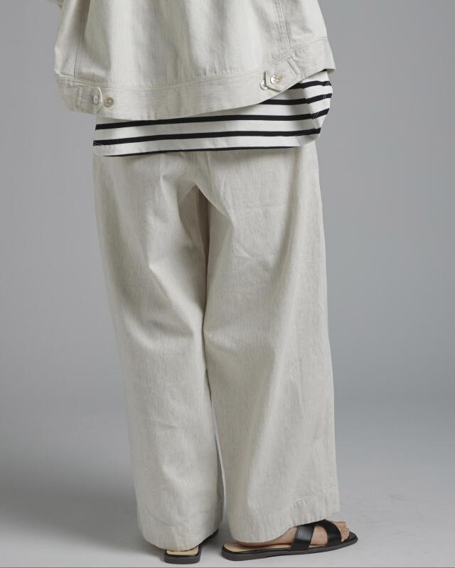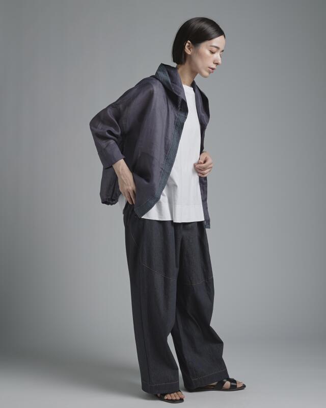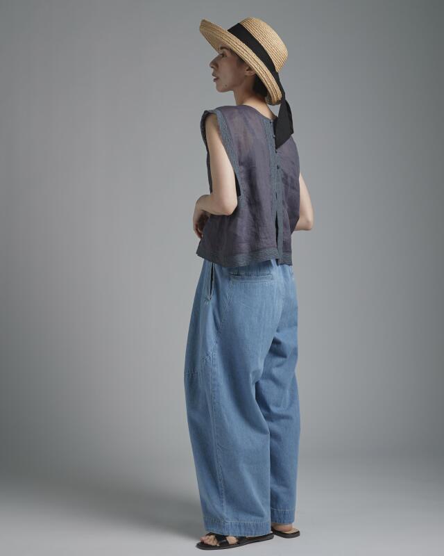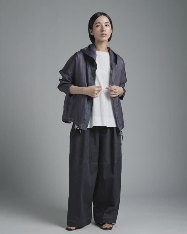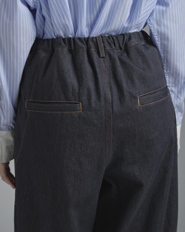薄手で軽やかなデニム素材を使用し、やわらかな肌触りが心地よい一本です。デニムならではの表情を楽しみながら、季節を問わず取り入れやすい生地感に仕上げました。