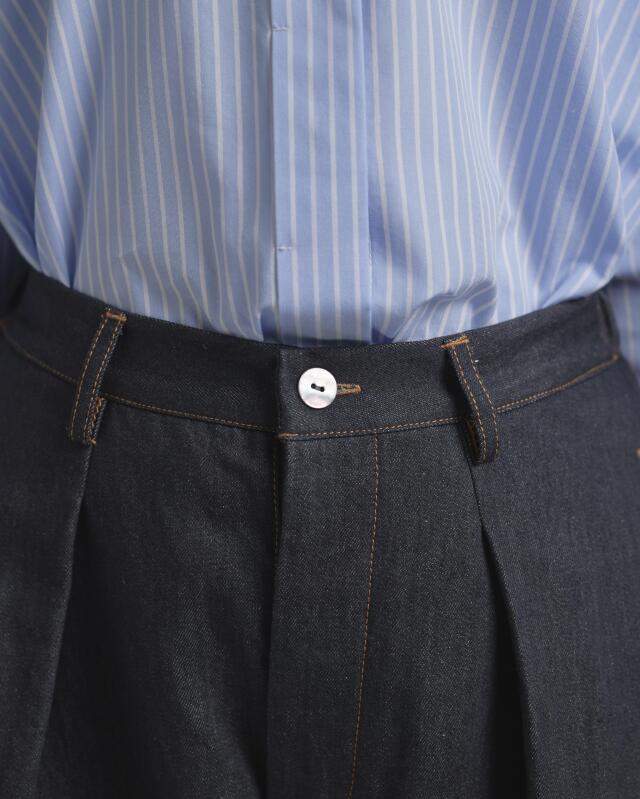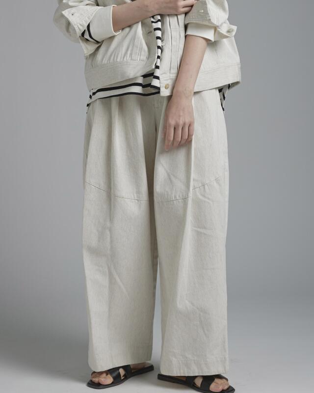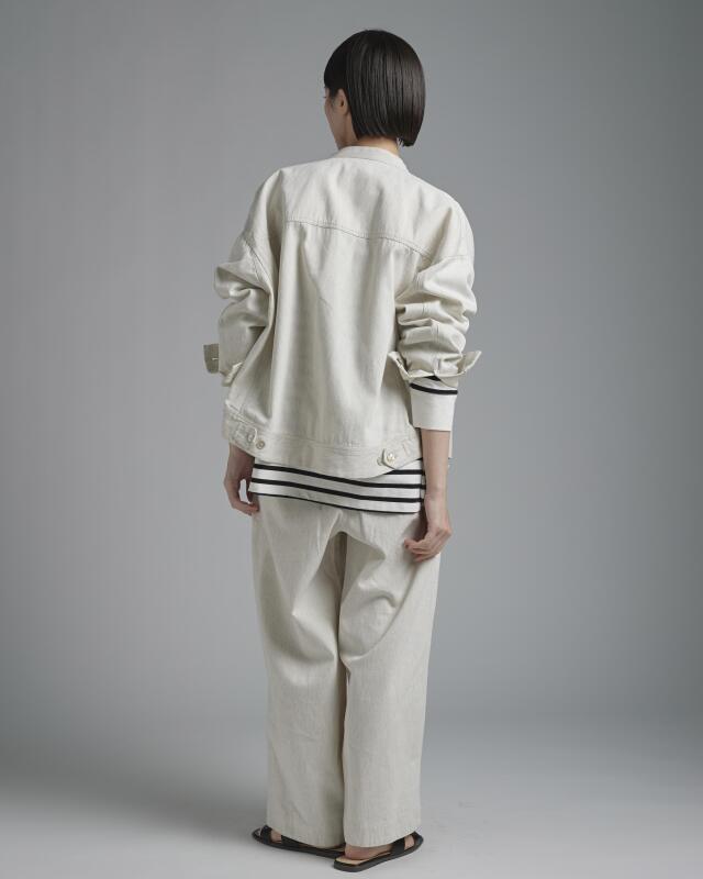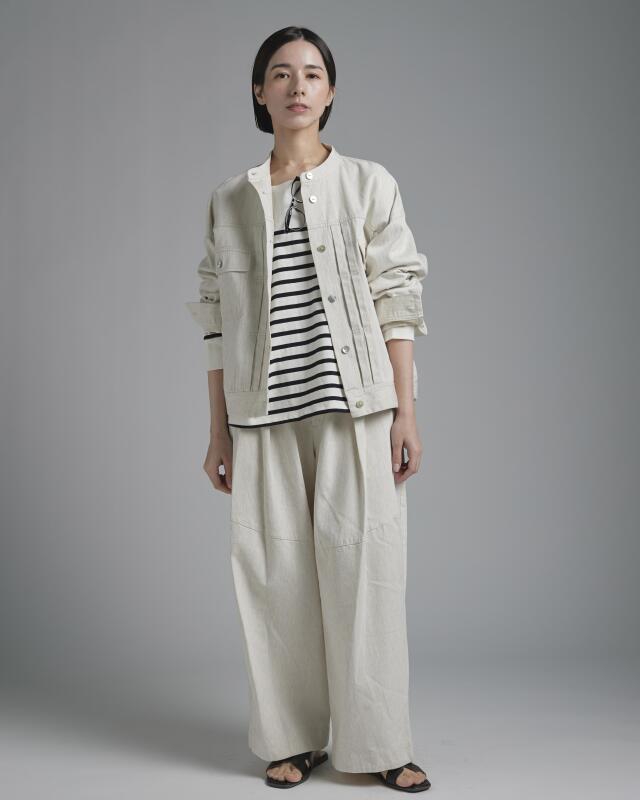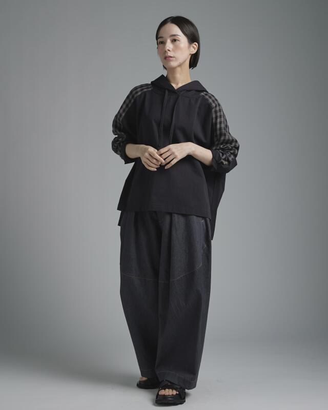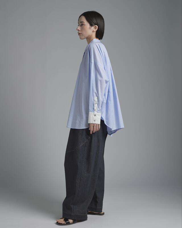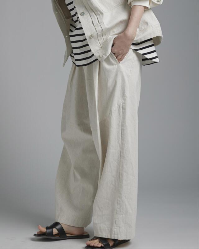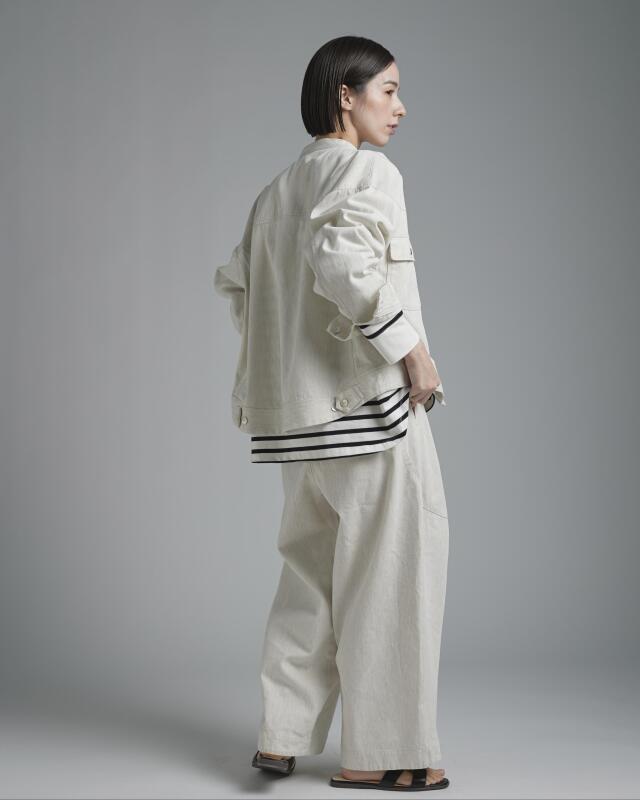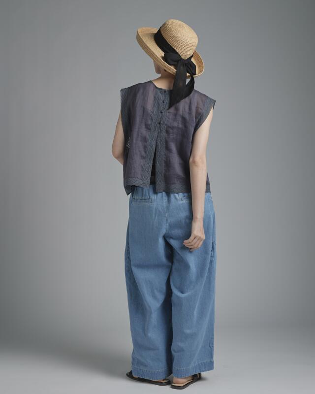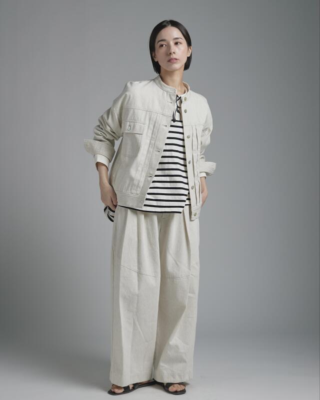 薄手で軽やかなデニム素材を使用し、やわらかな肌触りが心地よい一本です。デニムならではの表情を楽しみながら、季節を問わず取り入れやすい生地感に仕上げました。