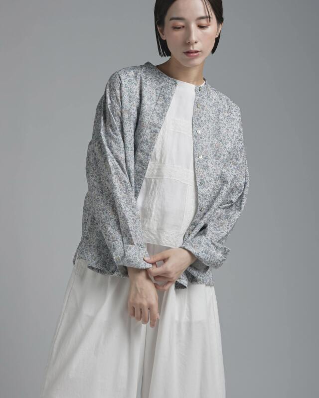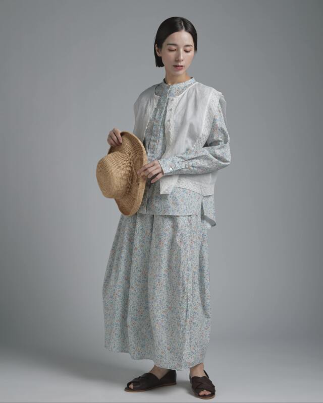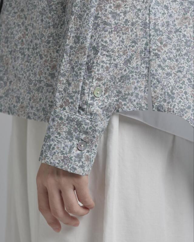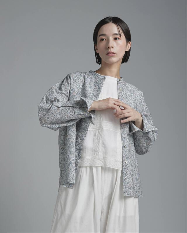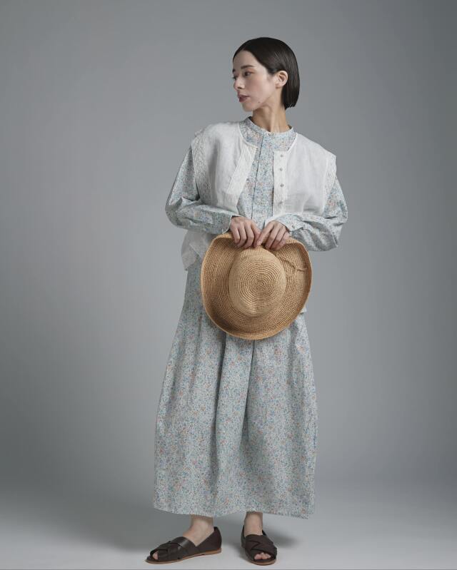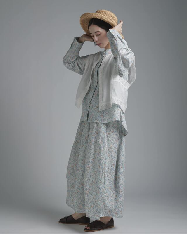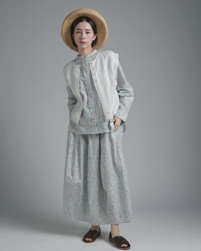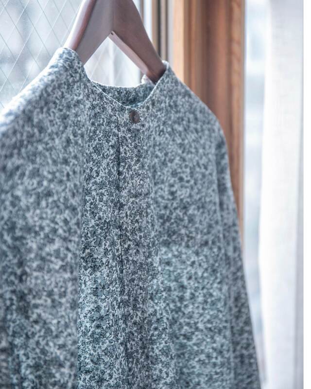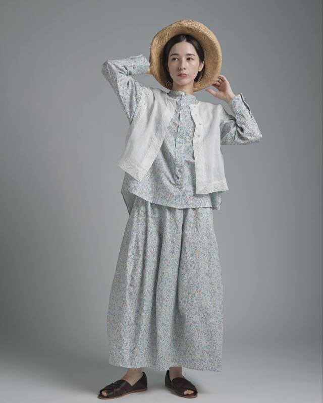 上品な小花プリントと綿麻の風合いが、そっと寄り添う一枚。