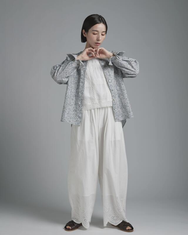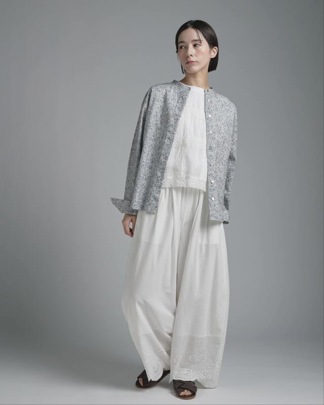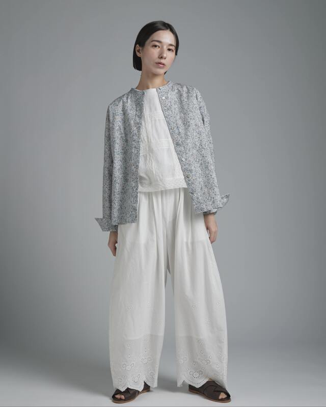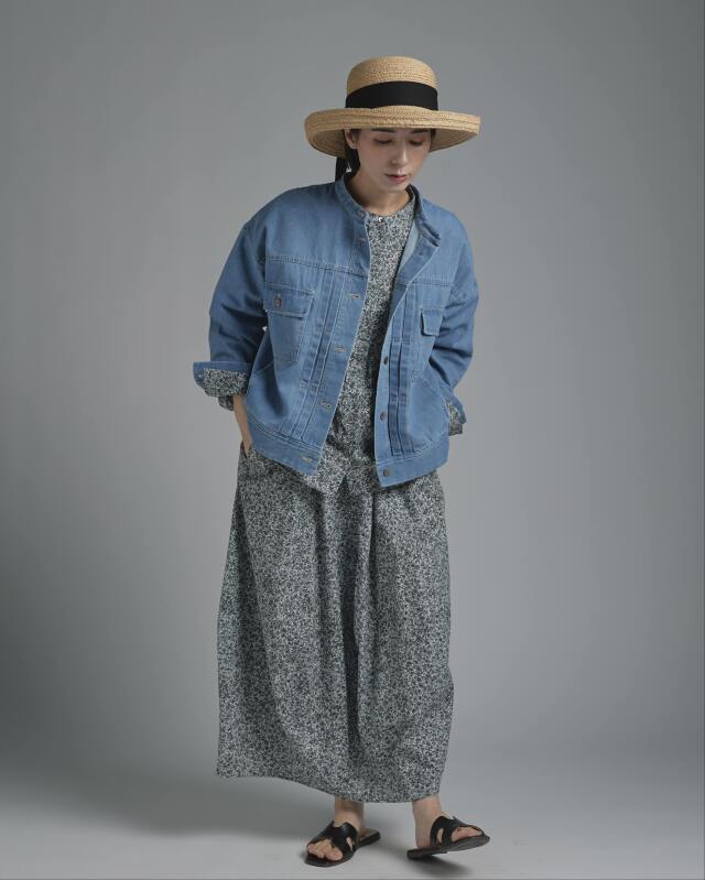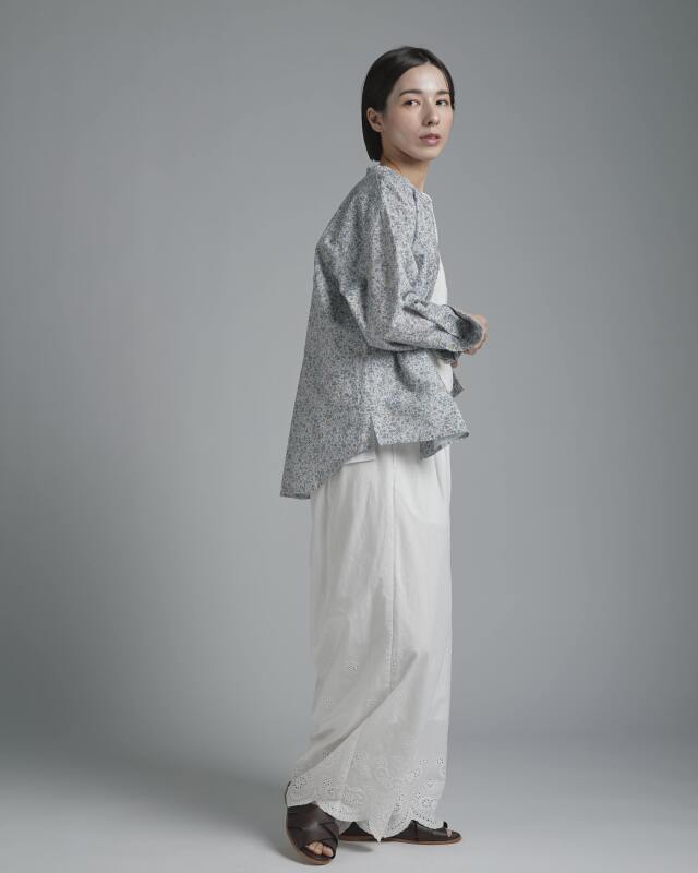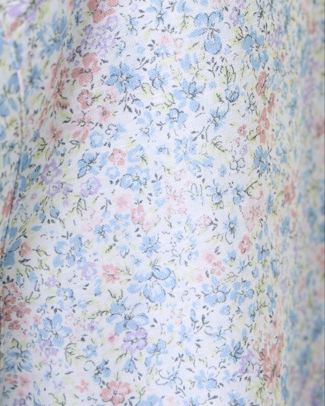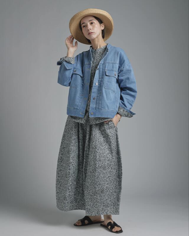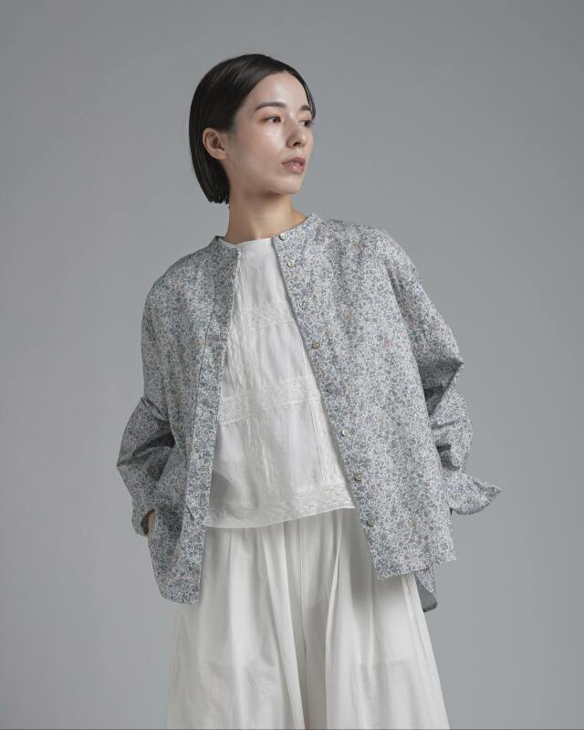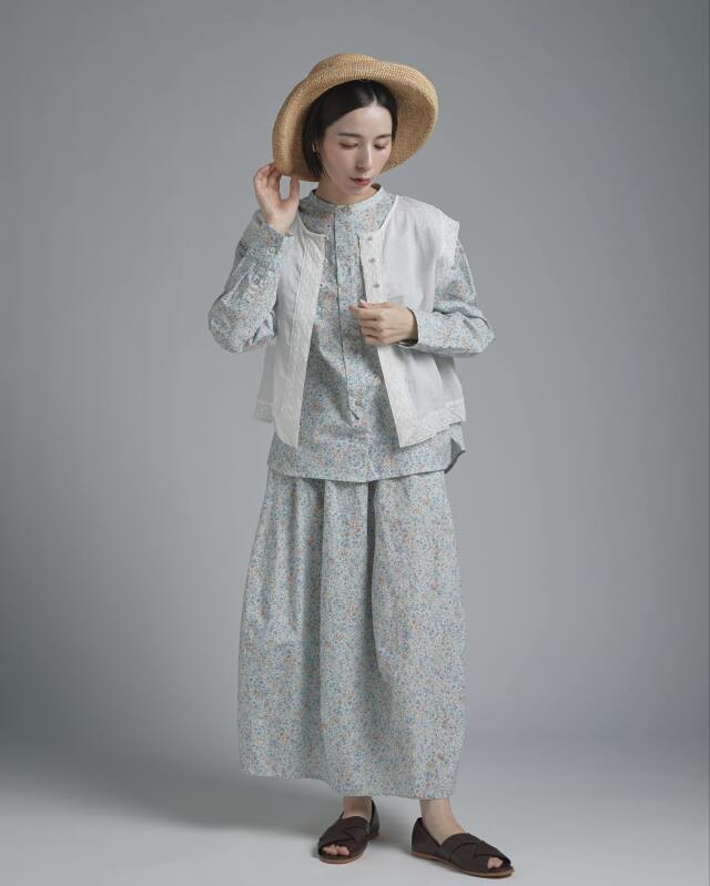 上品な小花プリントと綿麻の風合いが、そっと寄り添う一枚。