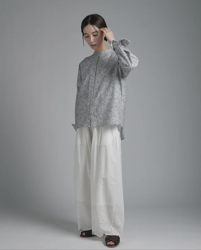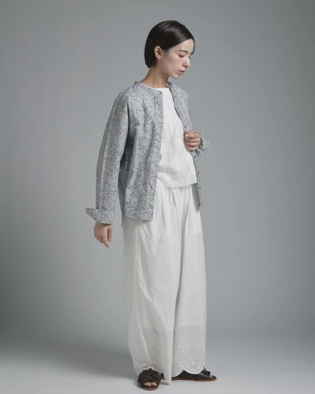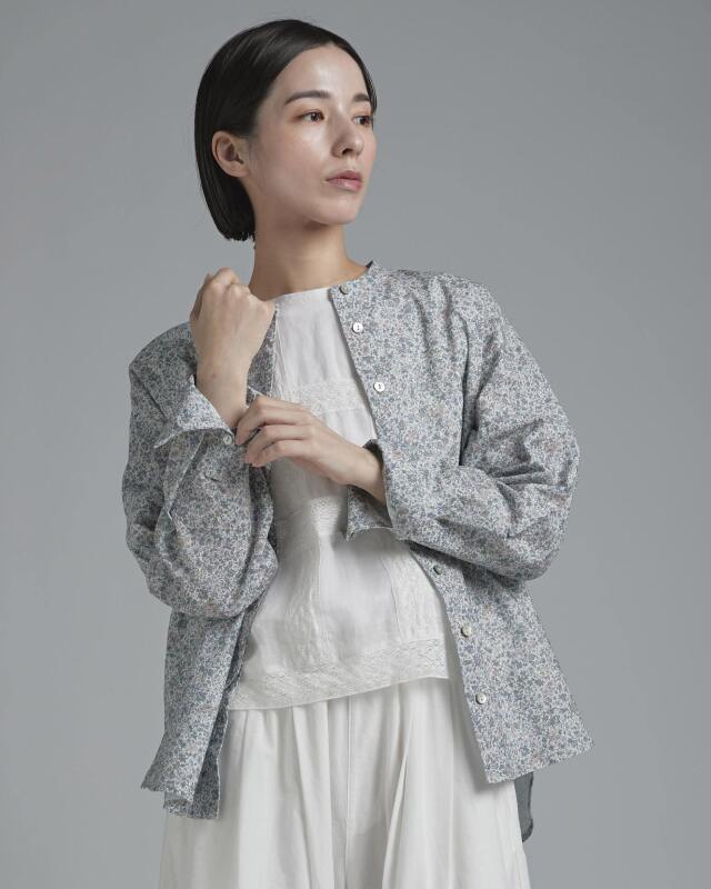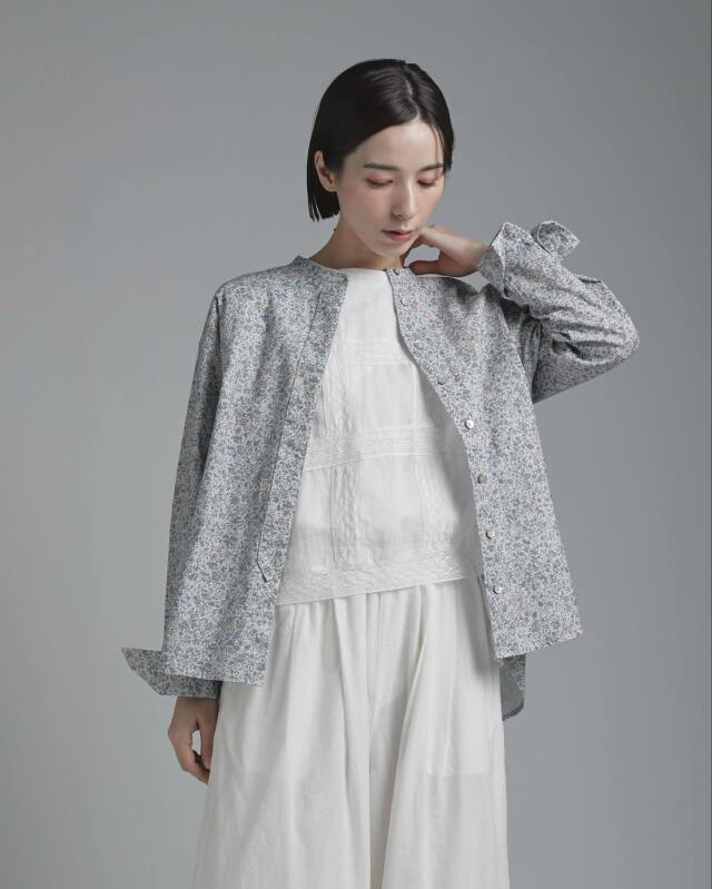 シルエットはオーバーすぎない程よいゆとりを持たせ、体のラインを自然にカバー。フロントは比翼仕立てにすることで、前立てにさりげないデザインポイントを添えました。すっきりとした印象の中に、上品な表情が生まれます。