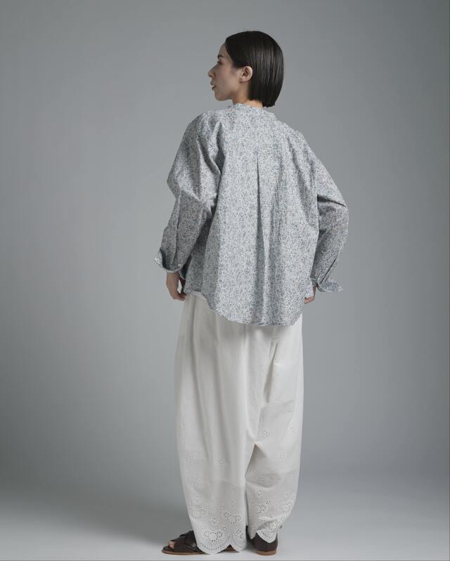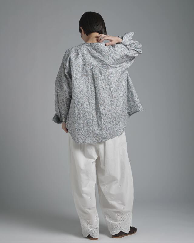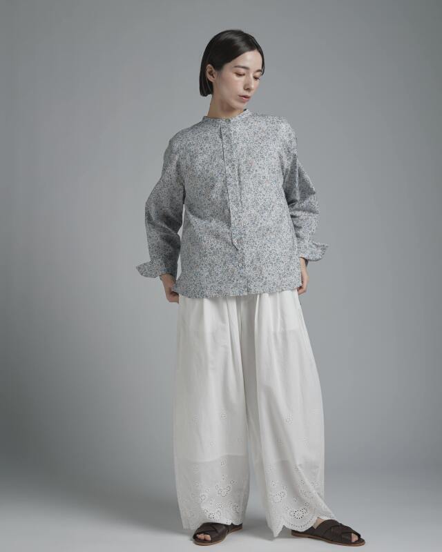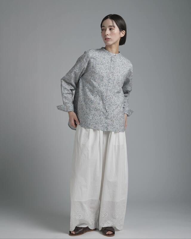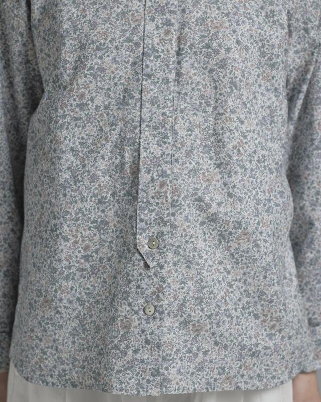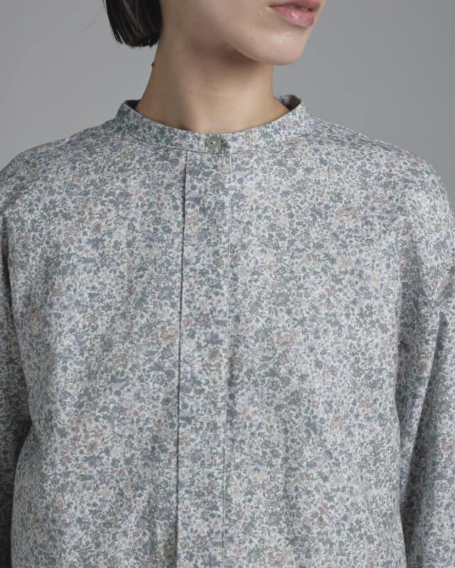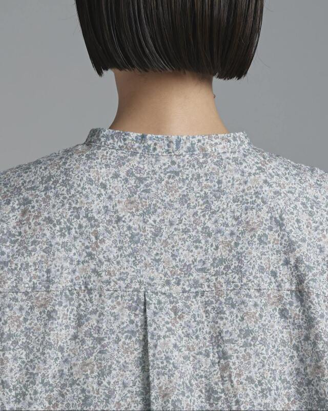 繊細で上品な小花プリントが印象的な、コットンリネン素材のプルオーバーです。綿のやわらかさと麻のさらりとした風合いが合わさり、ナチュラルで肌なじみのよい着心地に仕上がっています。流行に左右されにくく、長く楽しめる柄も魅力です。