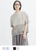 シャリ感のあるラミー素材をベースに、平織とツイル素材でさりげなく切り替えたブラウス。