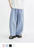 綿100%の高密度素材を使用したワイドコクーンパンツ。