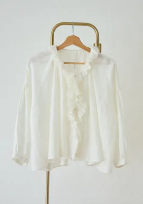 コットンリネンタックレースブラウス